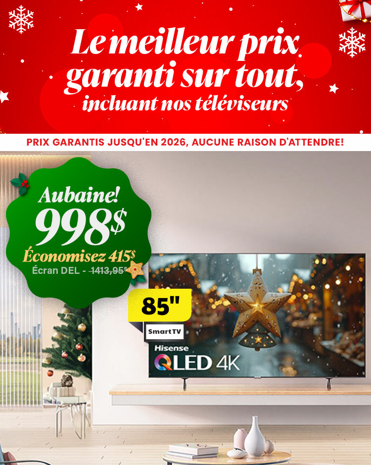 Nous offrons une grande sélection de meubles, matelas, électronique, électroménagers et accessoires pour tous les goûts. Nous vendons des grandes marques telles que Amisco, Arboit Poitras, Azur, Bosch, Broan, Canadel, Café, Danby, Decor Rest, Elran, Ek Design, GE, GE Profile, Hisense, LG, LG Studio, Mazin, Monarch, Pel International, Relaxon, Samsung, Tomali etc.