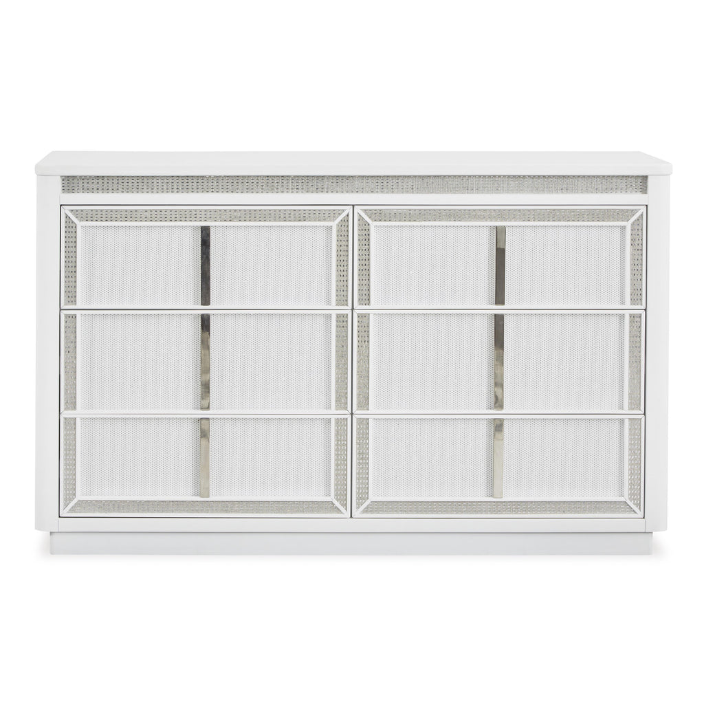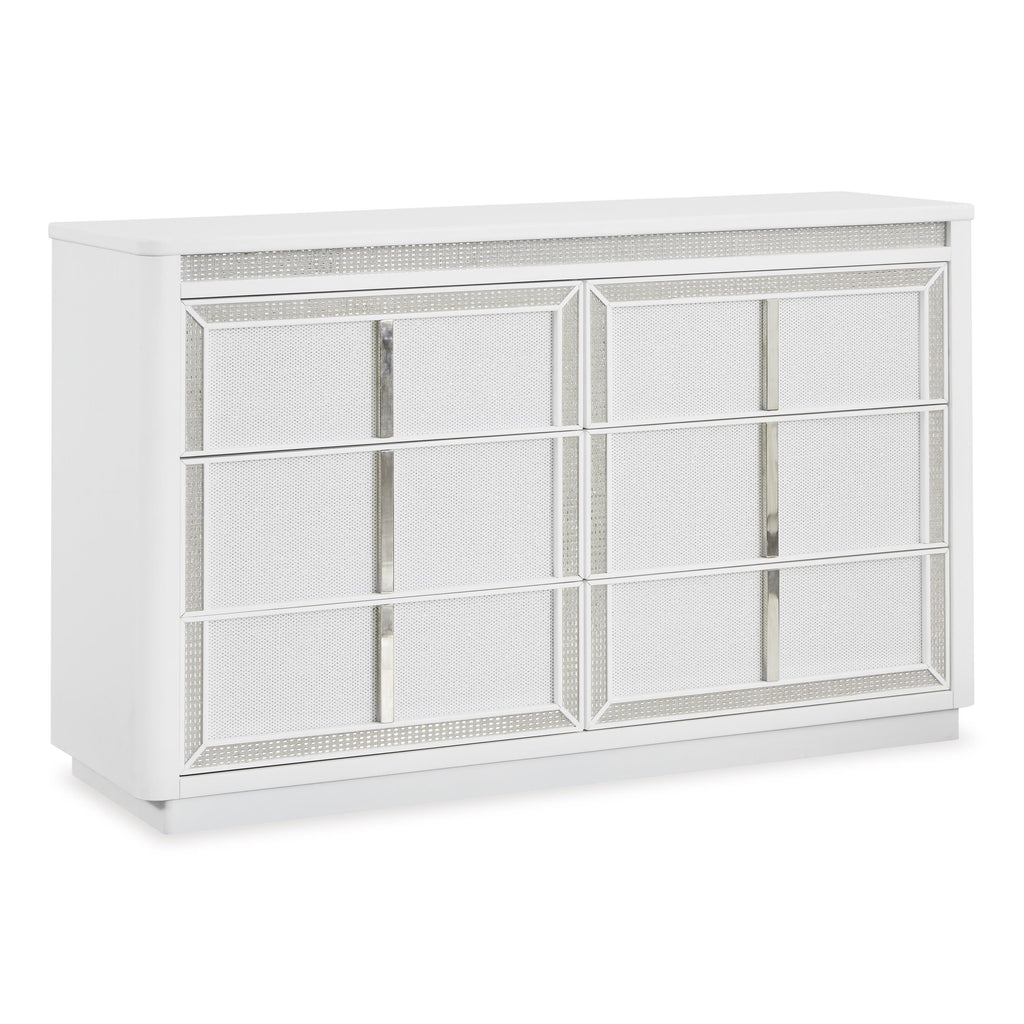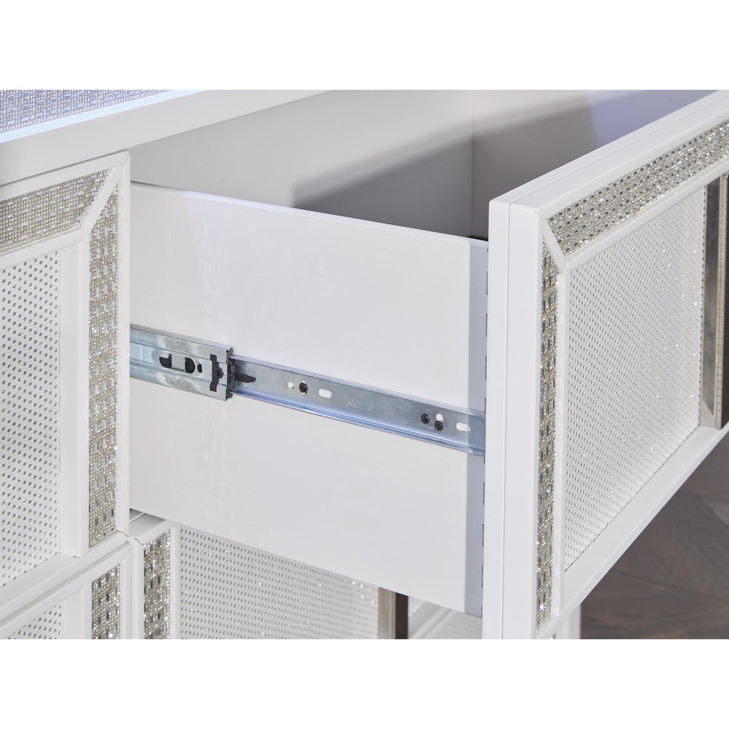 • Tiroirs avec encadrements en strass ; faces de tiroir en stratifié texturé
