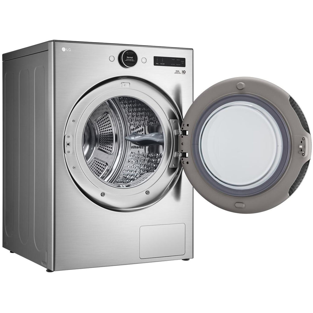 Sécheuse à chargement frontal Smart de LG d'une méga capacité de 7,8 pi³ avec technologie Dual Inverter HeatPump™ et système de moteur à entraînement direct à inverseur. Pentures non réversibles.