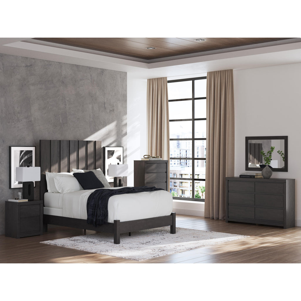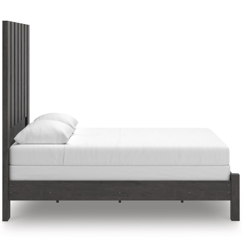 Retrouvez la simplicité sereine des lignes épurées et des tons neutres foncés de ce lit à panneaux queen. C'est une approche sincère de l'élégance moderne, vous offrant un style haut de gamme à un prix avantageux. Des planches verticales décorent la tête de lit aux dimensions généreuses pour donner l'illusion d'une hauteur supplémentaire, peaufinant la pièce de manière grandiose.