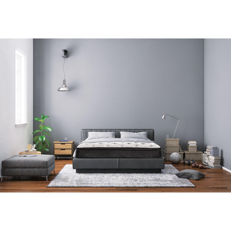 Matelas à base de résine naturelle de plantes ainsi que de matières recyclées. Tissu Twister Gris™ est conçu pour offrir souplesse et confort. Matelas de 12". 3/4" de fibre de polyester. 3" mousse ondulée. 1/2" nappe de mousse. 3/8" d'isolant feutre flexel. Ce feutre vous offre une sous-couche qui apporte la bonne structure et le support désiré. Une rangée de 418 ressorts continus avec supports latéraux métalliques. 3/8" de feutre isolant. Produit fait au QuébecDisponibilité du produit
