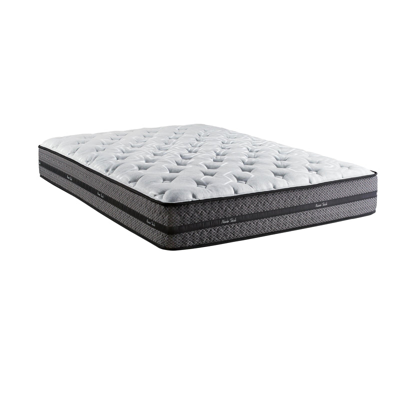 Matelas confort ferme à base de résine naturelle de plantes procurant plus de fraîcheur tout au long de votre sommeil. Tissu Simetry grey™ offrant plus de fraîcheur au contact du corps tout au long de la nuit. 3/4" de fibre de polyester. 3/4" de mousse Gel non thermosensible, flexible, fraîche et souple. Cette luxueuse mousse s'adapte parfaitement aux formes du corps et élimine les points de pression. 1 1/2" de mousse ondulée et 3/4" isolant feutre. Une rangée de 1475 ressorts ensachés plus une rangée de 1560 ressorts Nano 1" répartis en 7 zones de fermeté, offrant un meilleur confort. Conçu dans un caisson de mousse, ce matelas vous offre un confort équilibré sur toute sa surface. Produit fait au Québec