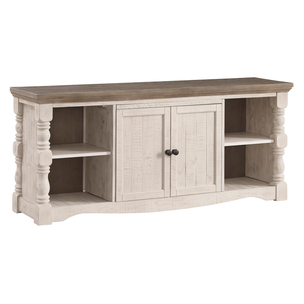 • Meuble TV avec armoire à 2 portes avec rangement à une étagère et 2 étagères ouvertes