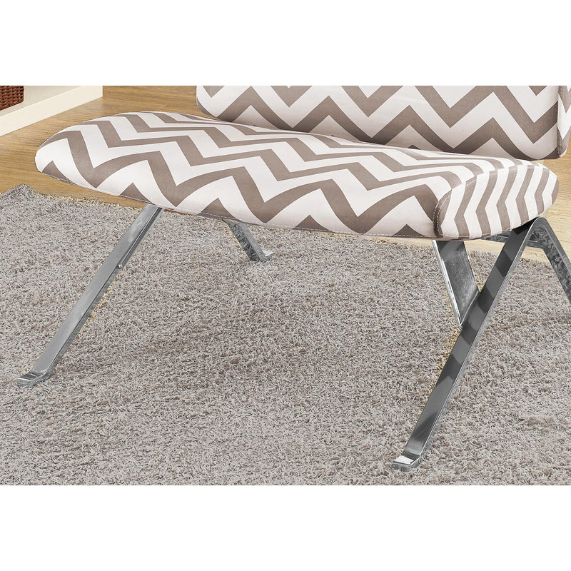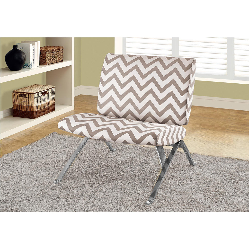 D'un style avant-garde mais très confortable, cette chaise d'appoint à motifs chevronnés taupe est la parfaite addition à votre salon, chambre à coucher ou toutes autres pièces qui auraient besoin d'une touche de style contemporain. Les pattes de métal chromé et son fini simple complète le design moderne de cette pièce.