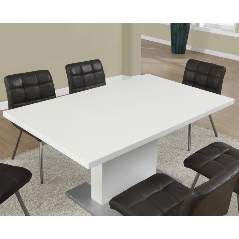 Créez un look contemporain branché avec cette table de salle à manger blanche et glacée de Monarch. Cette pièce présente des pieds en acier inoxydable élégants et une surface généreuse pouvant accueillir des réunions intimes ou plus grandes. Mélangez-les avec votre chaise préférée pour créer une expérience culinaire unique et élégante.