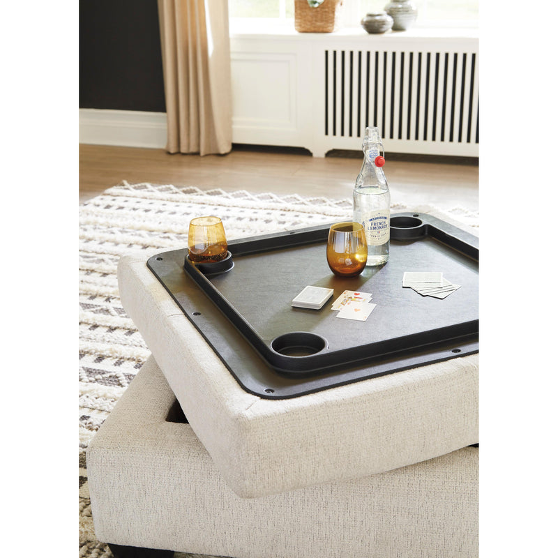 • Built-in tabletop/cup holders on reverse side of removable cushion