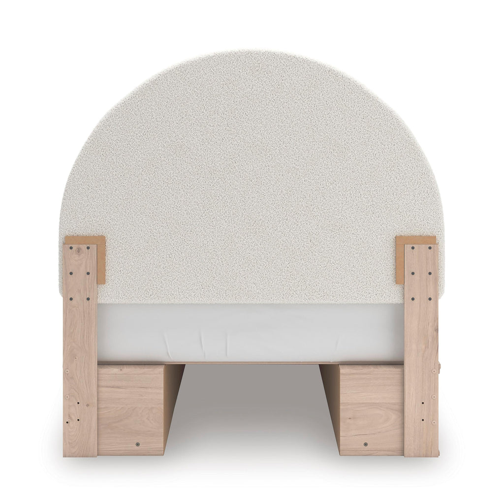 Looking for a full storage bed that's both playful and practical for your little one? This piece is just the ticket. Its charming organic shaping and light upholstery create a whimsical and inviting look that whispers “sweet dreams.” Spacious drawers underneath provide plenty of storage, so there’s no need for a messy room.