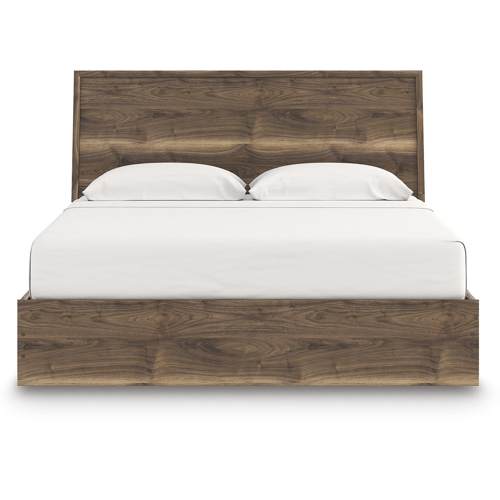 Nostalgic style, retooled for today’s trends. This king panel bed puts an elevated twist on mod aesthetics. Its warm brown tones reflect the mid-century vibes you love, while the simple panel design incorporates contemporary motifs. Sleek and stylish, it helps you build your bedroom into a modern haven with a touch of retro-cool flair.