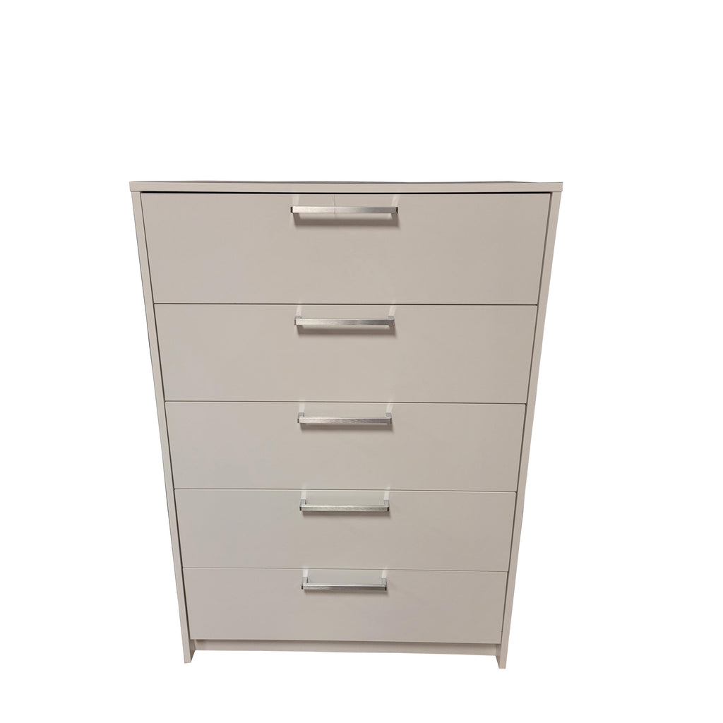 Commode 5 tiroirs de teinte blanche pour ensemble de chambre à coucher pour enfant