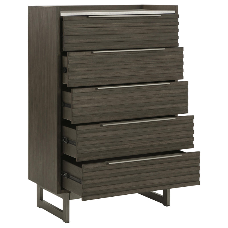 • 5 drawers with fully finished interiors, dovetail construction and soft-close ball-bearing side glides