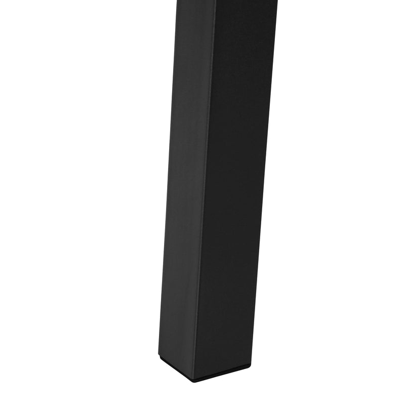 • Sturdy, angled table legs and armless, ladder-back dining chairs in black metal