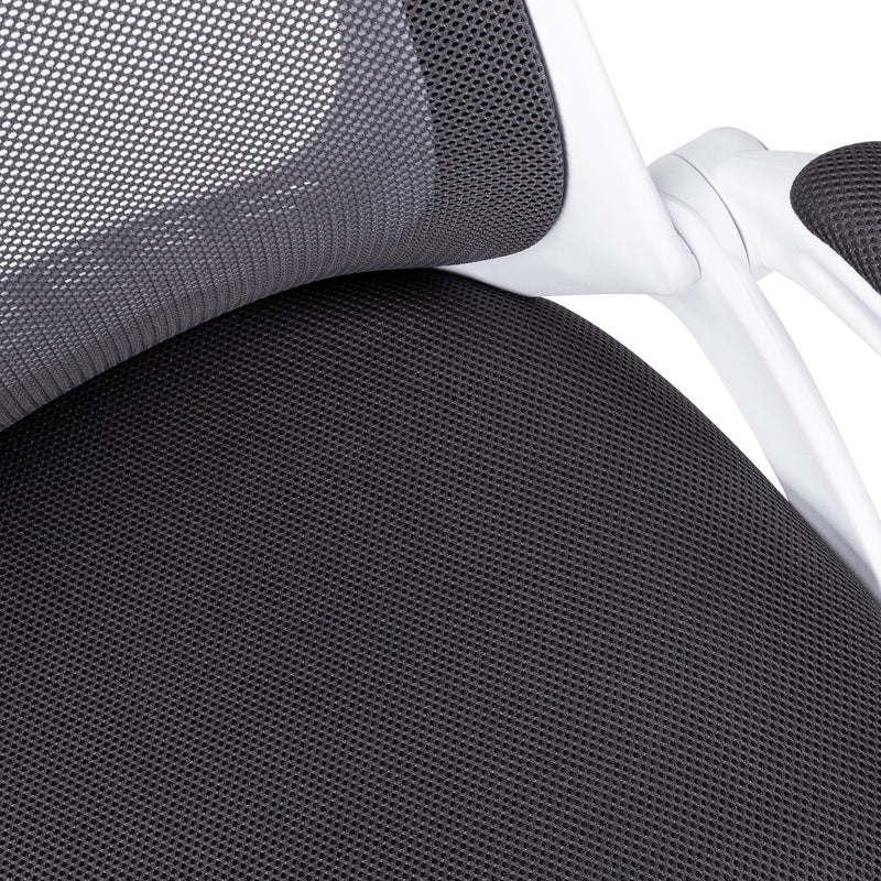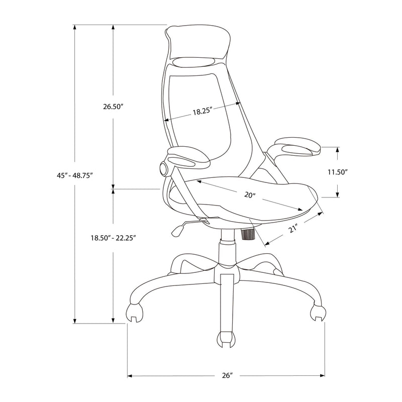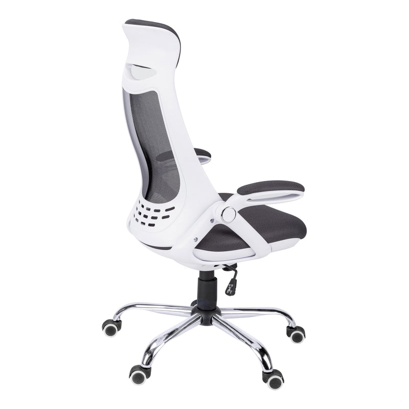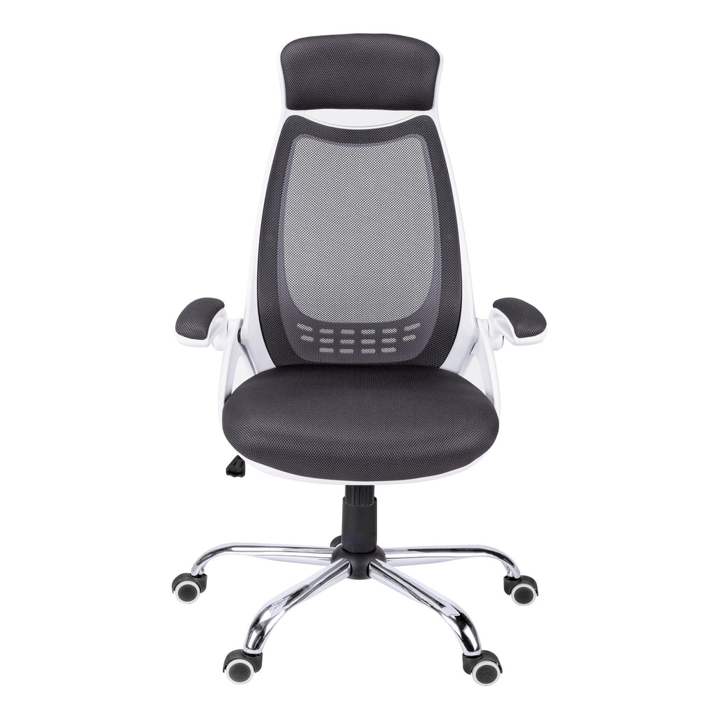 If a good office chair is a necessity, this supremely comfortable executive desk chair feels like a luxury. Generous padding gives the headrest, flip-up armrests, and seat outstanding softness. The padded seat is also extra thick, wide, and deep to provide a satisfyingly roomy feel. The supportive, high backrest is wide and has a curved, ergonomic design that promotes good posture. Sitting still isn't necessary thanks to the swivel seat and 5-star chrome metal base with casters that make moving around your workspace easy. This adjustable-height chair with tilt control is upholstered in a grey mesh fabric that is breathable to help keep you cool as you work hard.