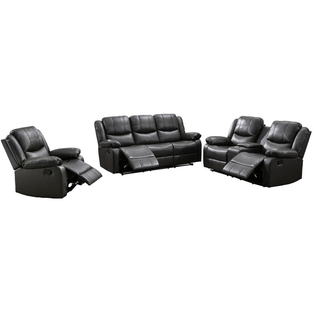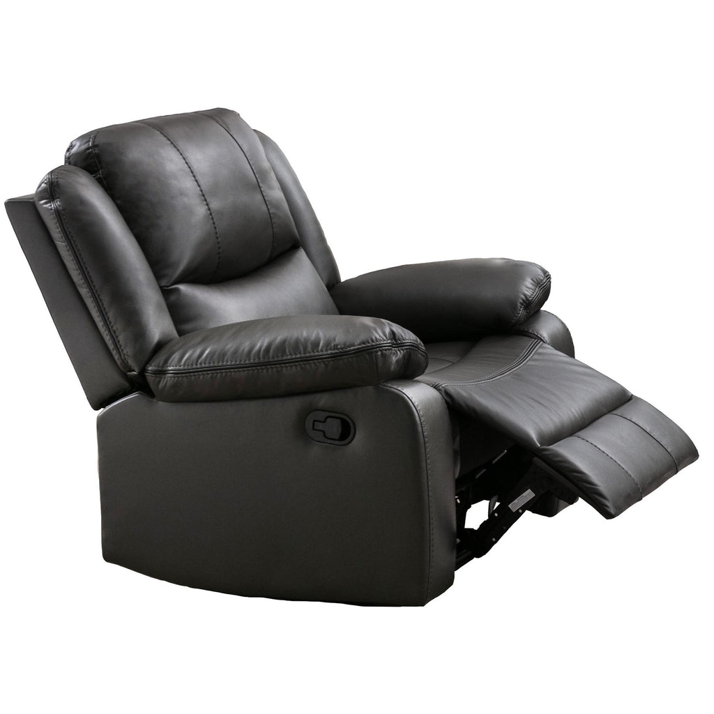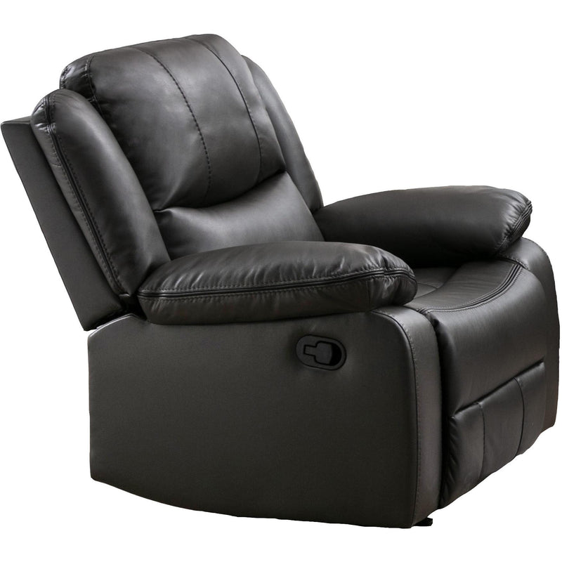 With its ample padding and attention to details, the McLeod rocker recliner walks a perfect line between visual attraction and comfort. Thick yet breathable leather gel provides a supple warmth during your relaxation while also achieving long-lasting durability. Contrast piping inset with broad stitching adds some flair, while a neutral grey hue ensures the McLeod collection will harmonize with any décor setting. Generously stuffed cushions join with pillow-style arms to support your body, while a tab-pull latch mechanism gives you the room you need to stretch out and say "ahhhh." With the recliner's gentle rocking motion, you are all set for leisure. Also available as a standard recliner.