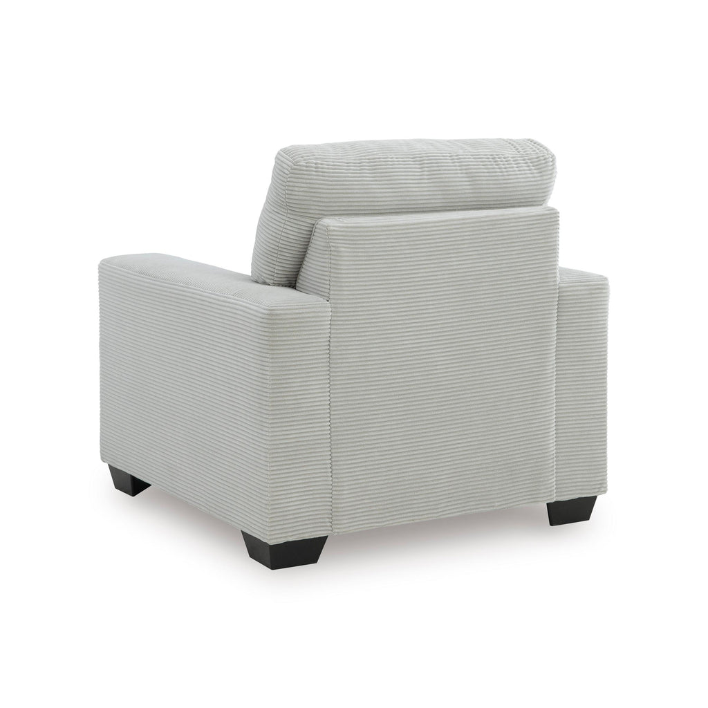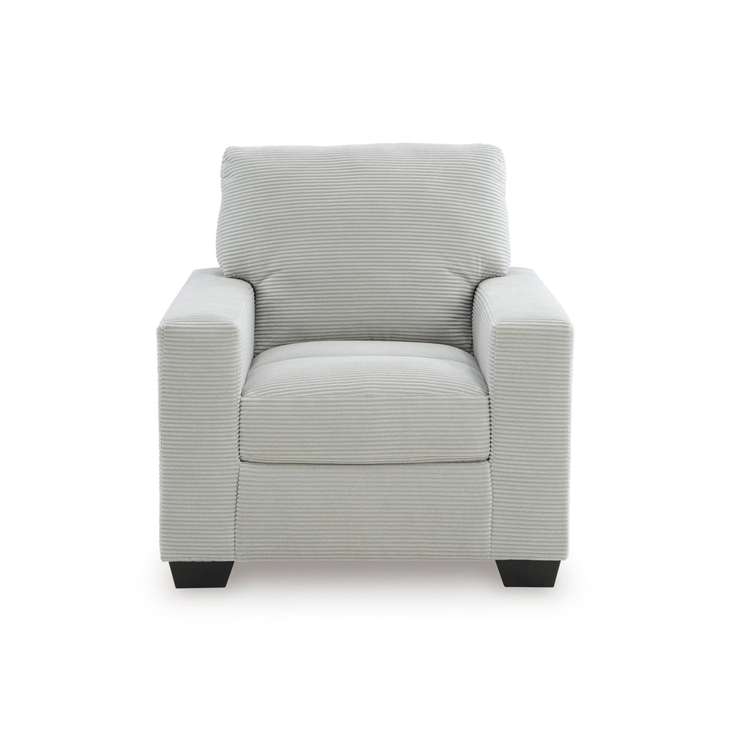 The crisp neutral hue and striking design details of this chair create a living room that expertly reflects your modern taste. For irresistibly cool textural appeal, the ultra-soft fabric is enhanced by a small-scale corded look. With a clean-lined silhouette complete with track arms, this chair allows you to take a trend-right approach to everyday living.