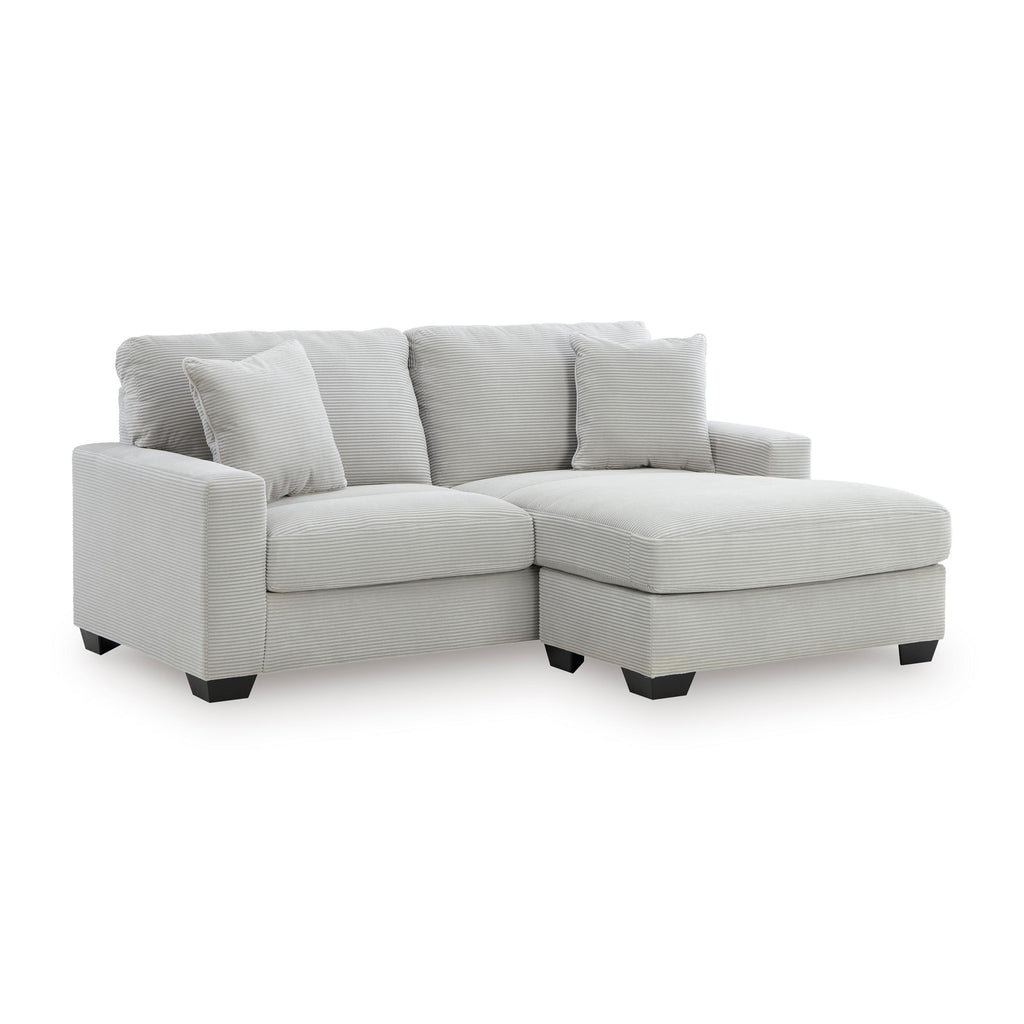 The crisp neutral hue and striking design details of this sofa chaise create a living room that expertly reflects your modern taste. For irresistibly cool textural appeal, the ultra-soft fabric is enhanced by a small-scale corded look. With a clean-lined silhouette complete with track arms, this sofa chaise allows you to take a trend-right approach to everyday living.