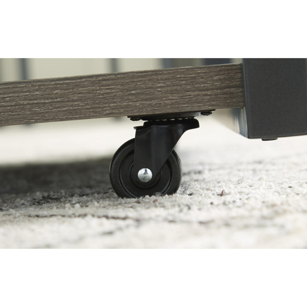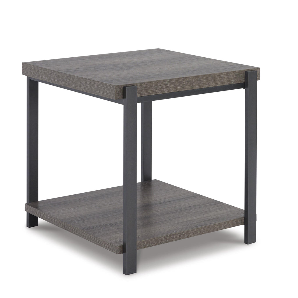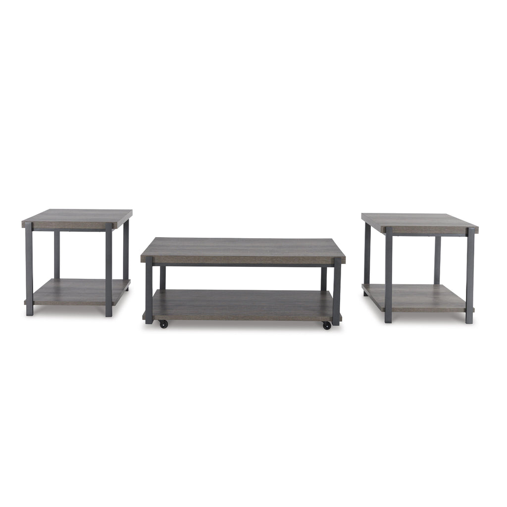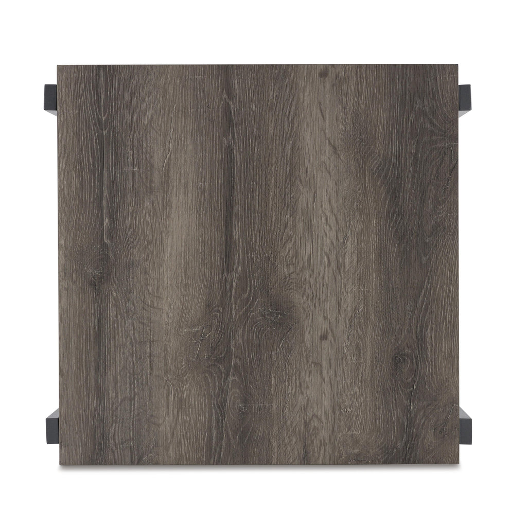 • Laminate features a replicated wood grain with a weathered gray coloration