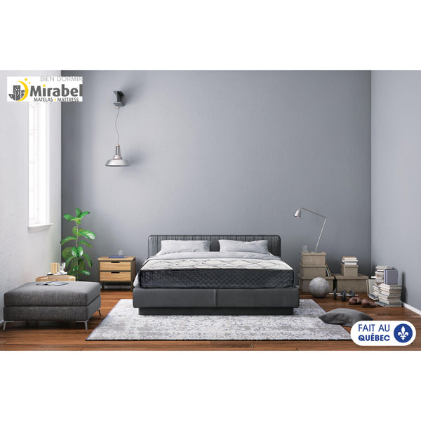 Mattress made from natural plant resin and recycled materials, offering firm comfort. Imma™ fabric is designed to offer flexibility and good comfort. 10" 3/4" polyester fiber mattress. 1" foam ply. A row of 609 Perimax™ pocket coils. Each coil responds independently for individual comfort thanks to the firm edge of each coil. 3/8 of insulating felt.Product made in Quebec.