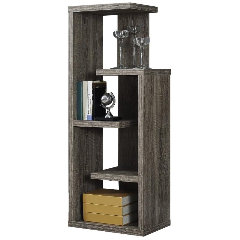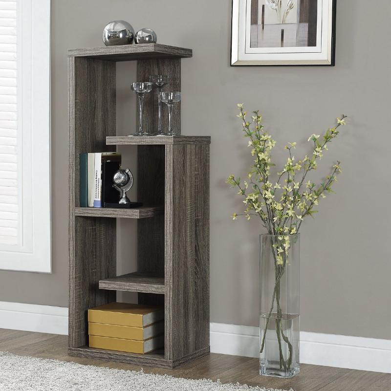 Enhance your living space with this beautifully crafted, dark taupe, wood-look display unit. Featuring clean lines and 5 open concept shelves perfect for displaying your most treasured decorative pieces this modern unit is sure to liven up your living room, entryway, family room, den, or office space. Your books, framed photos and other accent pieces have never looked so good!