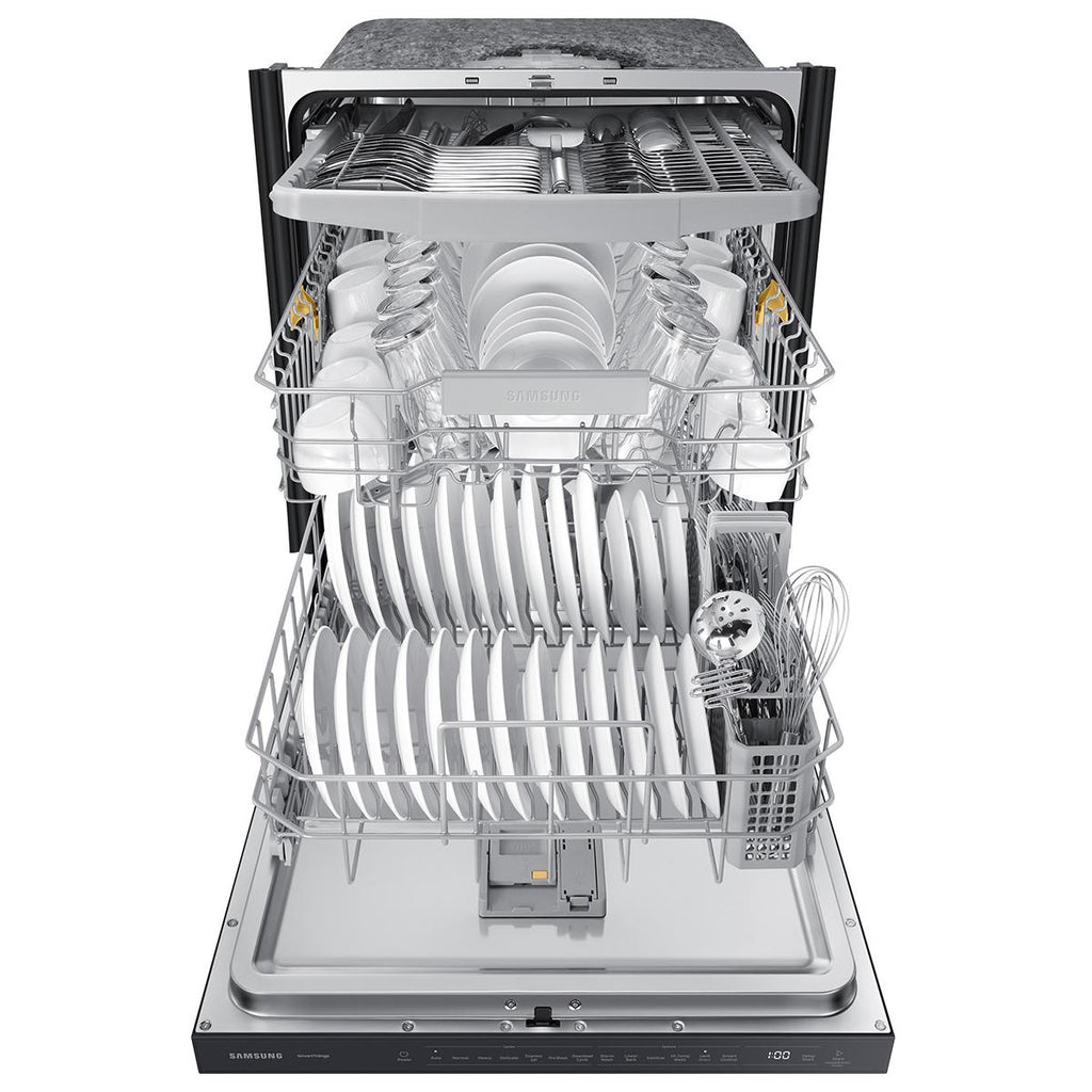 Samsung 46 dBA Smart Dishwasher with StormWash™. Clean the messiest pots and pans perfectly without the hassle of pre-washing. StormWash™... Samsung 46 dBA Smart Dishwasher with StormWash™. Clean the messiest pots and pans perfectly without the hassle of pre-washing. StormWash™ is a heavy-duty wash system with an extra spray jet that rotates independently from the main spray arm. It blasts high-pressure water from every angle to clean heavily soiled items of all shapes and sizes. Save energy but still clean and dry dishes effectively. The dishwasher is ENERGY STAR® certified under the ENERGY STAR® 7.0 energy labelling.It is proven to use less energy than conventional dishwashers, without sacrificing performance or functionality. View more