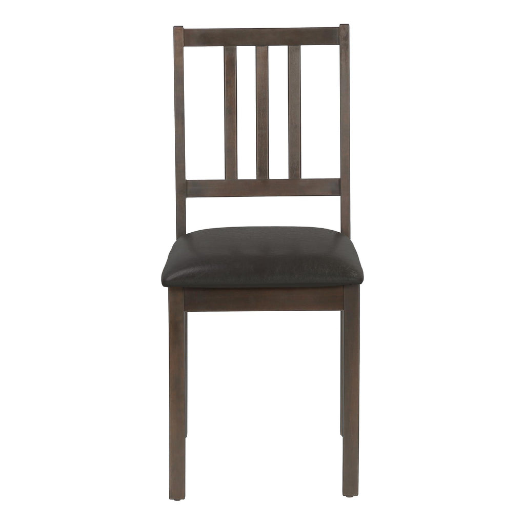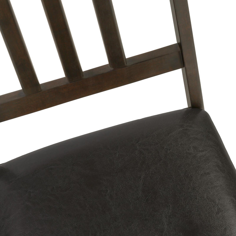 • Firm and thick foam cushioned seat upholstered in a dark brown leather look material that is easy to wipe up any spills