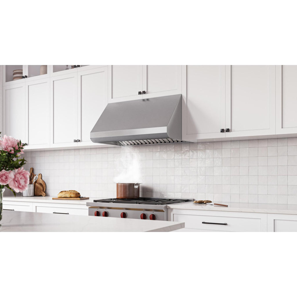 Broan's Pro-Style range hood series provides a sophisticated design without sacrifice. Built to withstand commercial style ranges and cooking habits,... Broan's Pro-Style range hood series provides a sophisticated design without sacrifice. Built to withstand commercial style ranges and cooking habits, the stainless steel wall mount hood is a seamless fit for both your space and the way you cook. These models come equipped with powerful, integrated internal blowers and embody professional features such as baffle filters, brilliant LED lighting, and 4-speed controls. View more