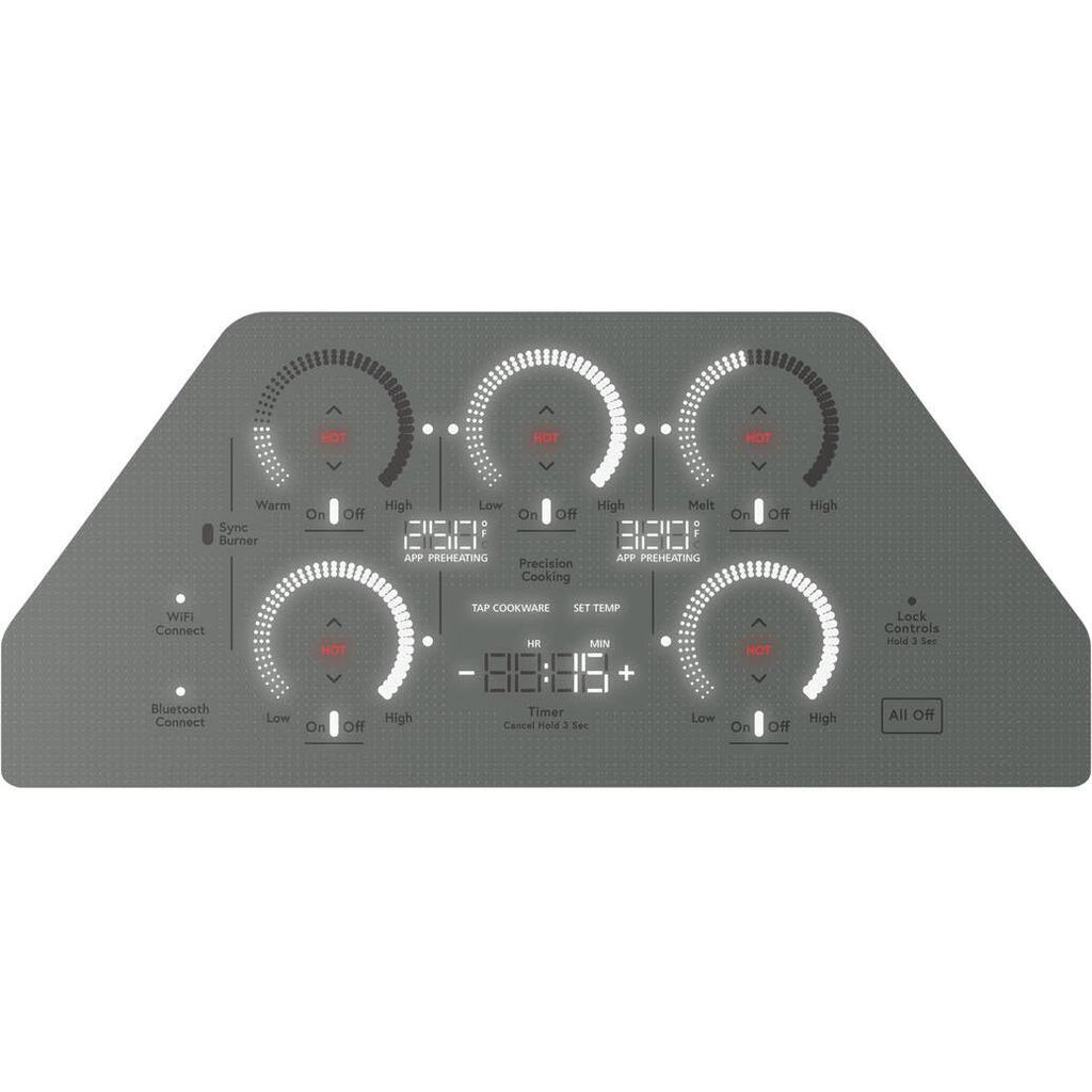 Café 36-inch built-in induction cooktop features Chef Connect, 5 cooktop elements, Wi-Fi connection and digital display.