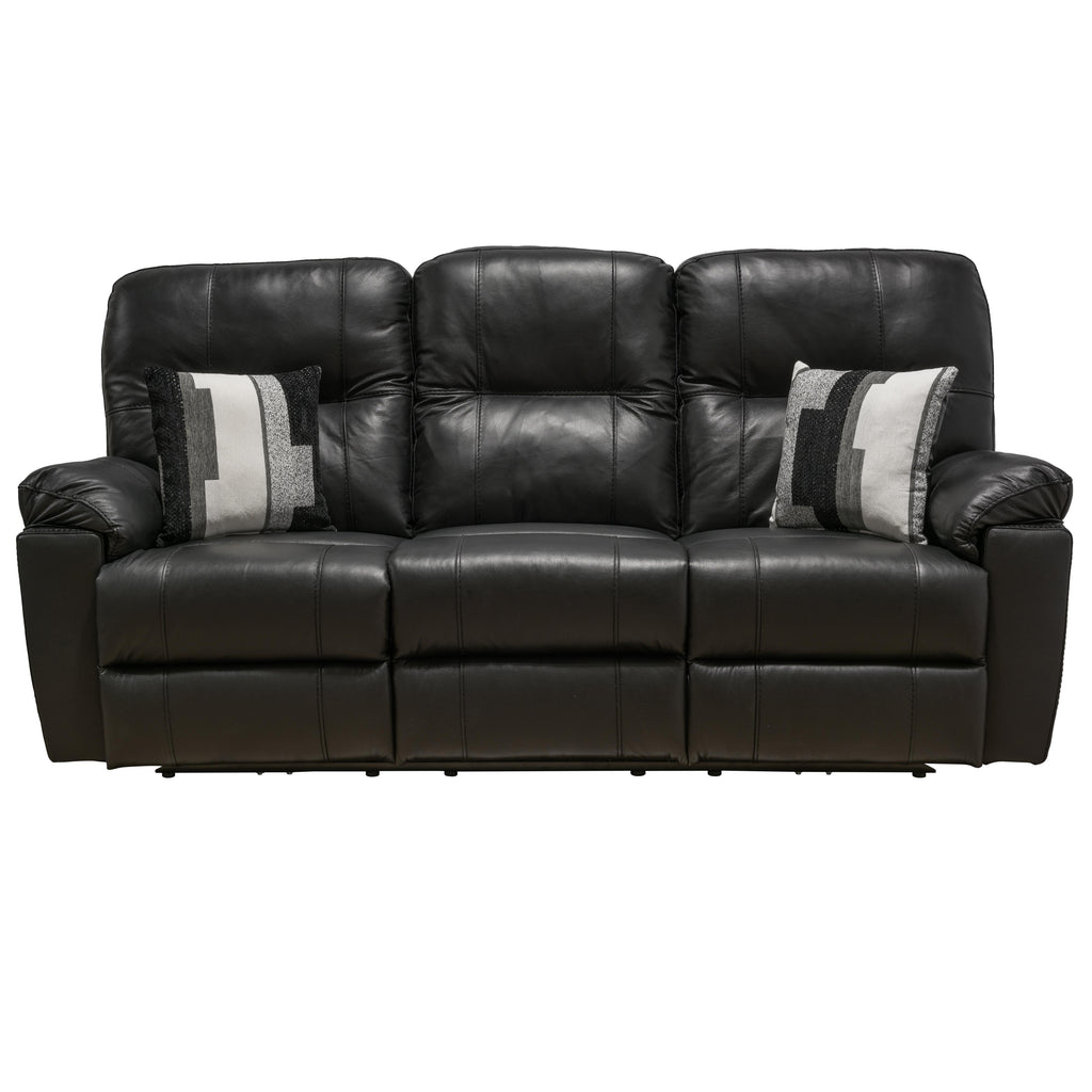 This power reclining sofa, upholstered in sleek black leather, delivers outstanding support with its generously padded backrests and deep seats. Effortlessly adjust your position with the smooth electric reclining mechanisms.