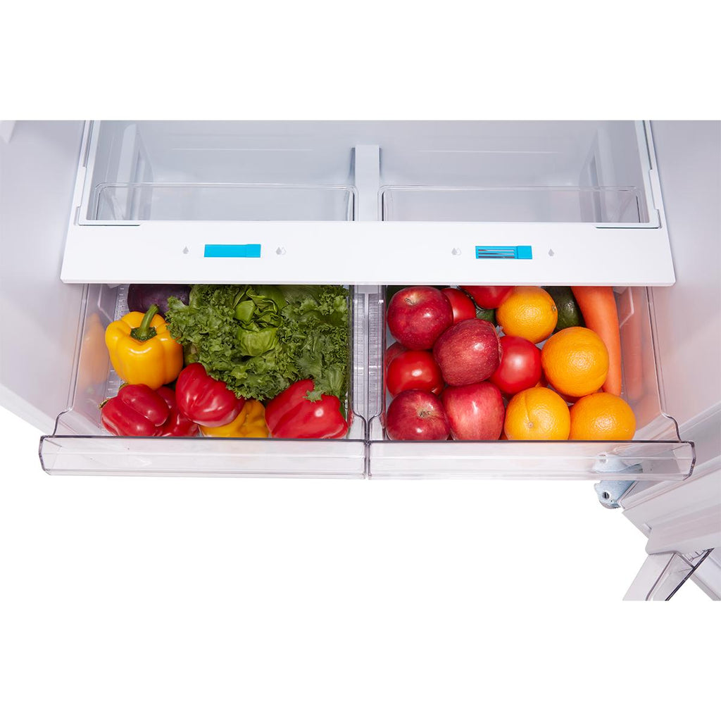 Dual Crisper drawers hold in moisture to keep fruits and vegetables fresh for longer.