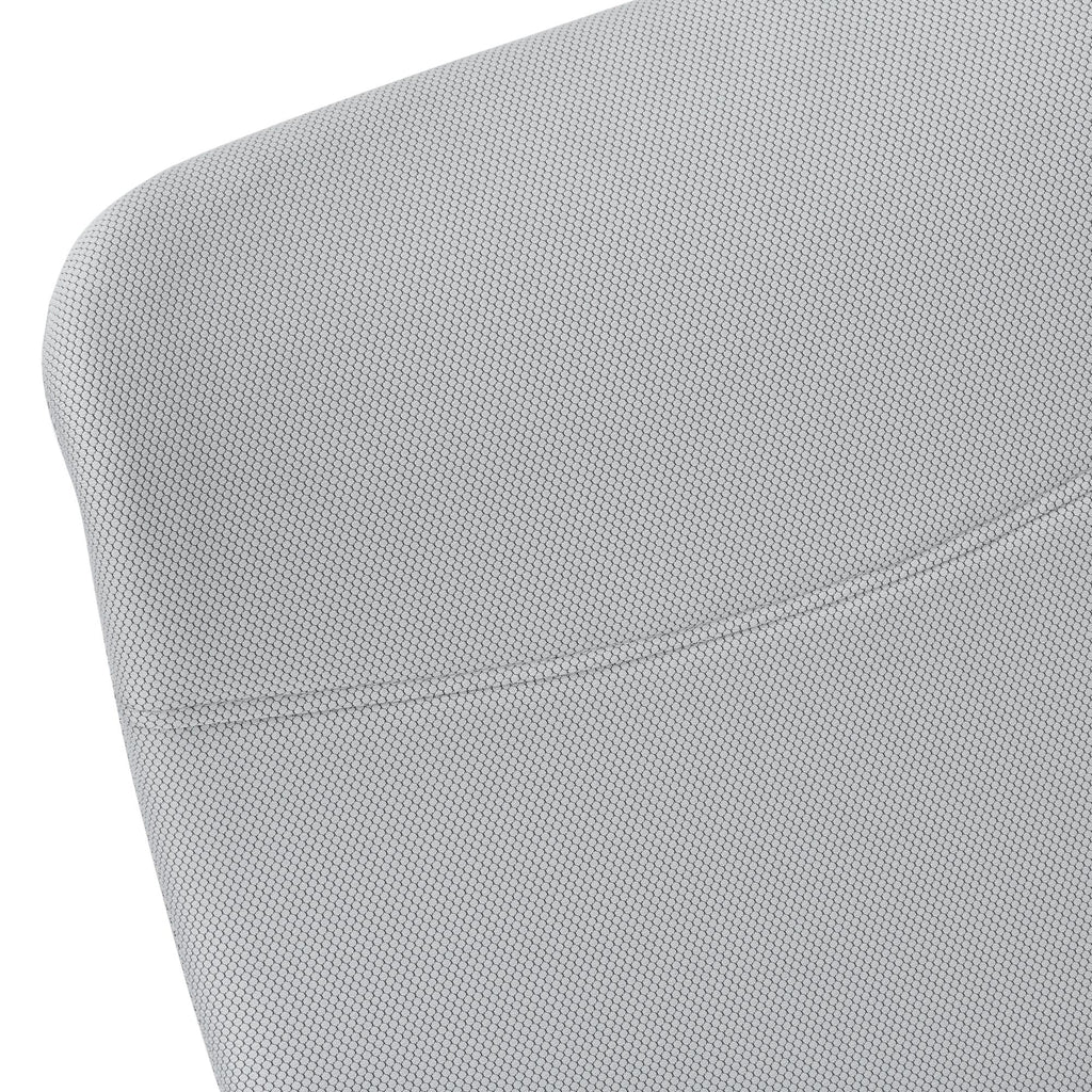 This executive office chair with fixed armrests in white works hard to deliver support and comfort. The ergonomically designed, high backrest with an integrated headrest is lightly padded, wide, and curves to promote good posture, while the padded seat is deep and wide to offer a roomy, comfortable feel. The adjustable height lever with tilt control makes it easy to adjust the chair to your preference. Moving around your workspace is virtually effortless thanks to the swivel seat and the casters on the white 5-star base. Upholstered in a grey fabric with minimal stitching, this contemporary task chair provides a comfortable place to sit as you work hard in your office.
