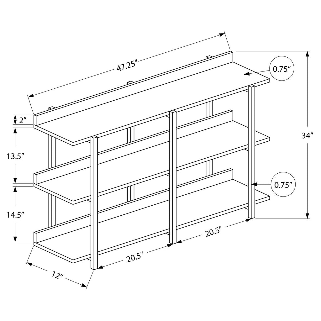 • 3 identical shelves provide a symmetrical display piece
