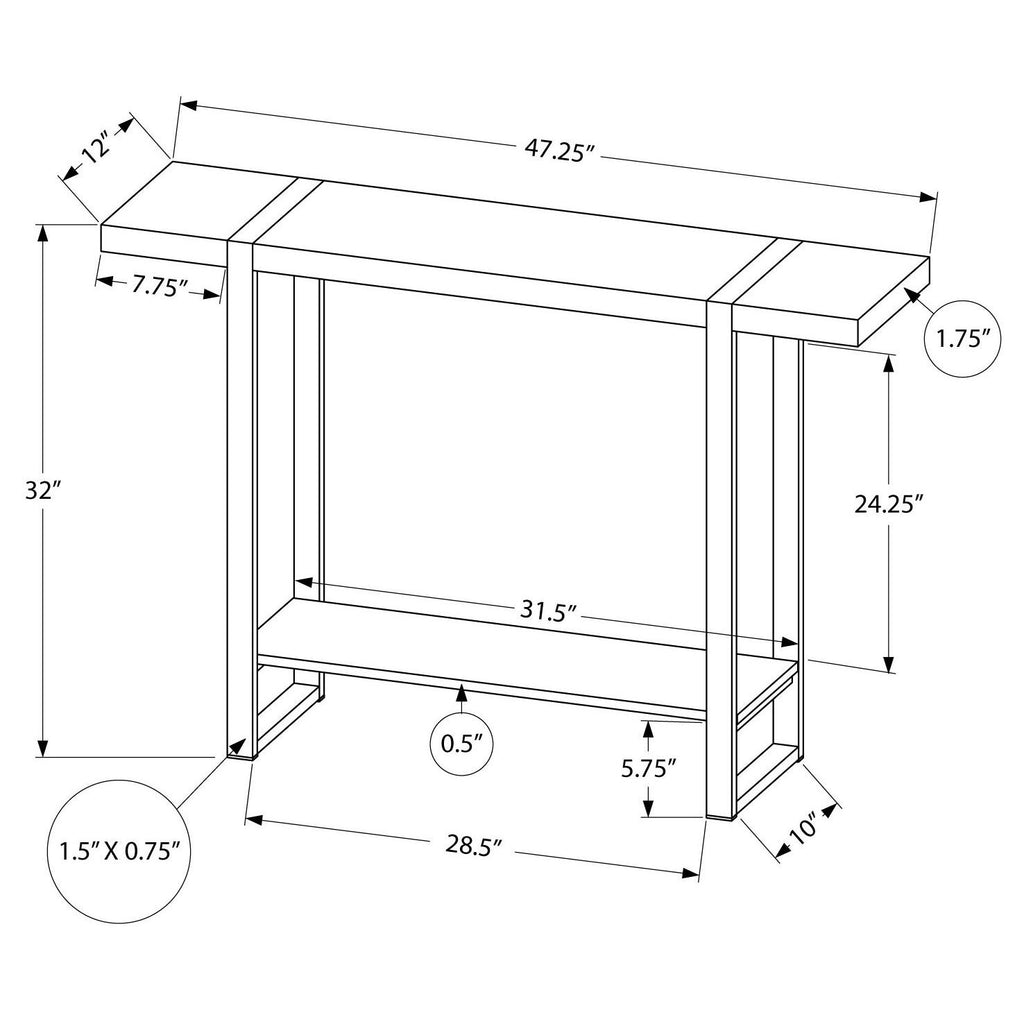 • Smaller lower shelf in a brown reclaimed wood-look finish for a rustic appeal