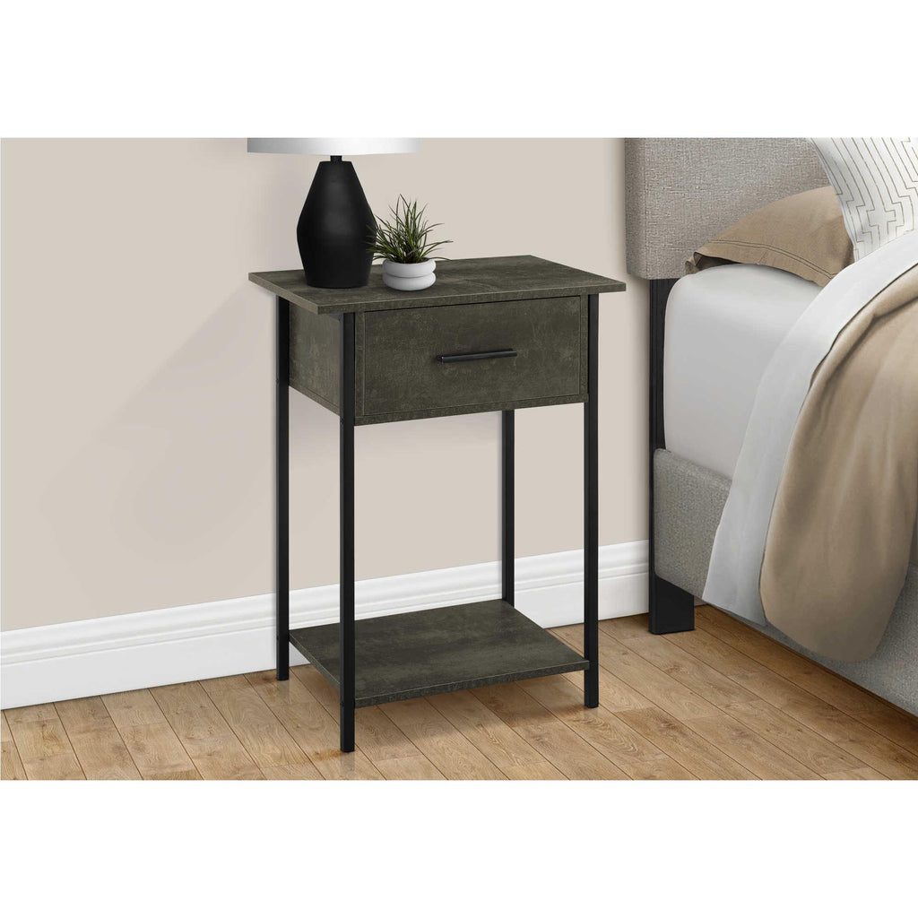 This Accent Table from Monarch will make a great addition to your living room. It features a drawer, a shelf at the bottom and comes in a Bronze finish.