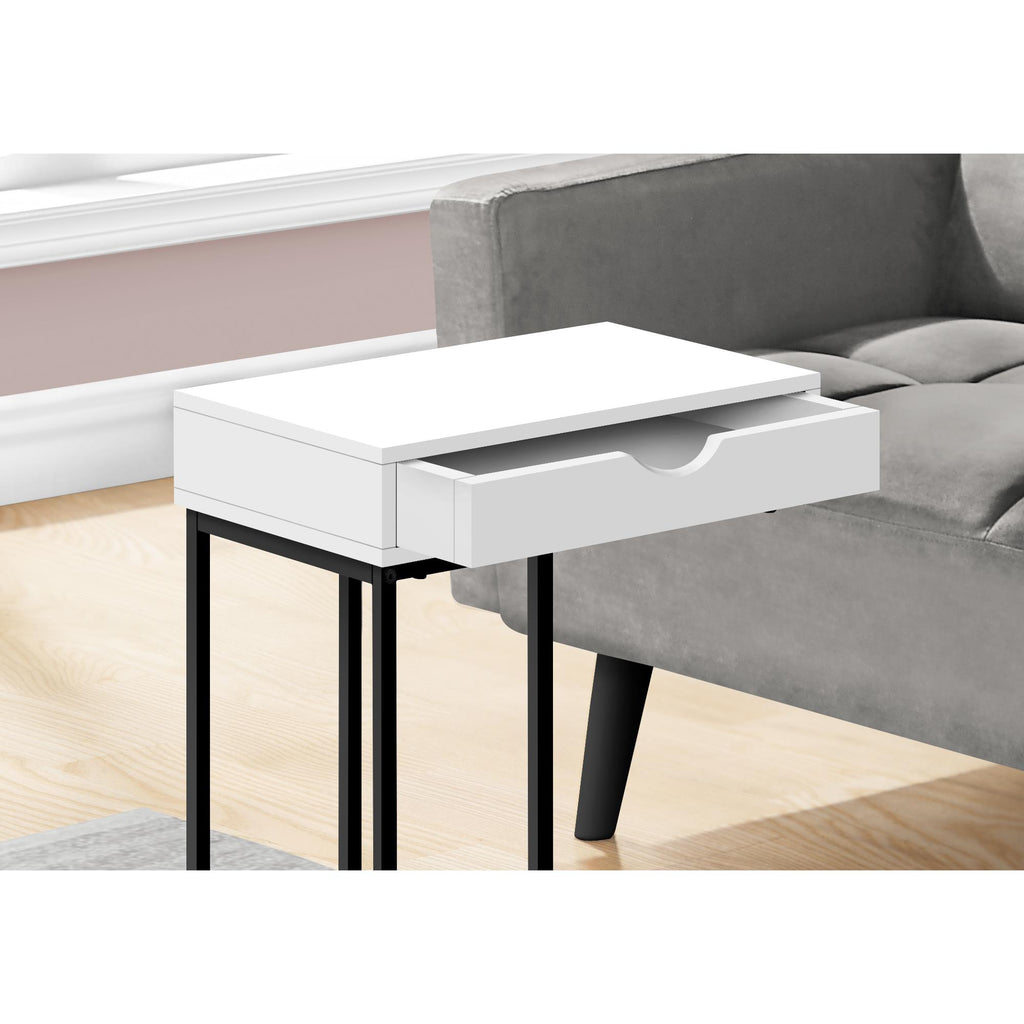 • Rectangular top is finished in a smooth white laminate and is supported by a sturdy, black metal frame for a clean, contemporary look