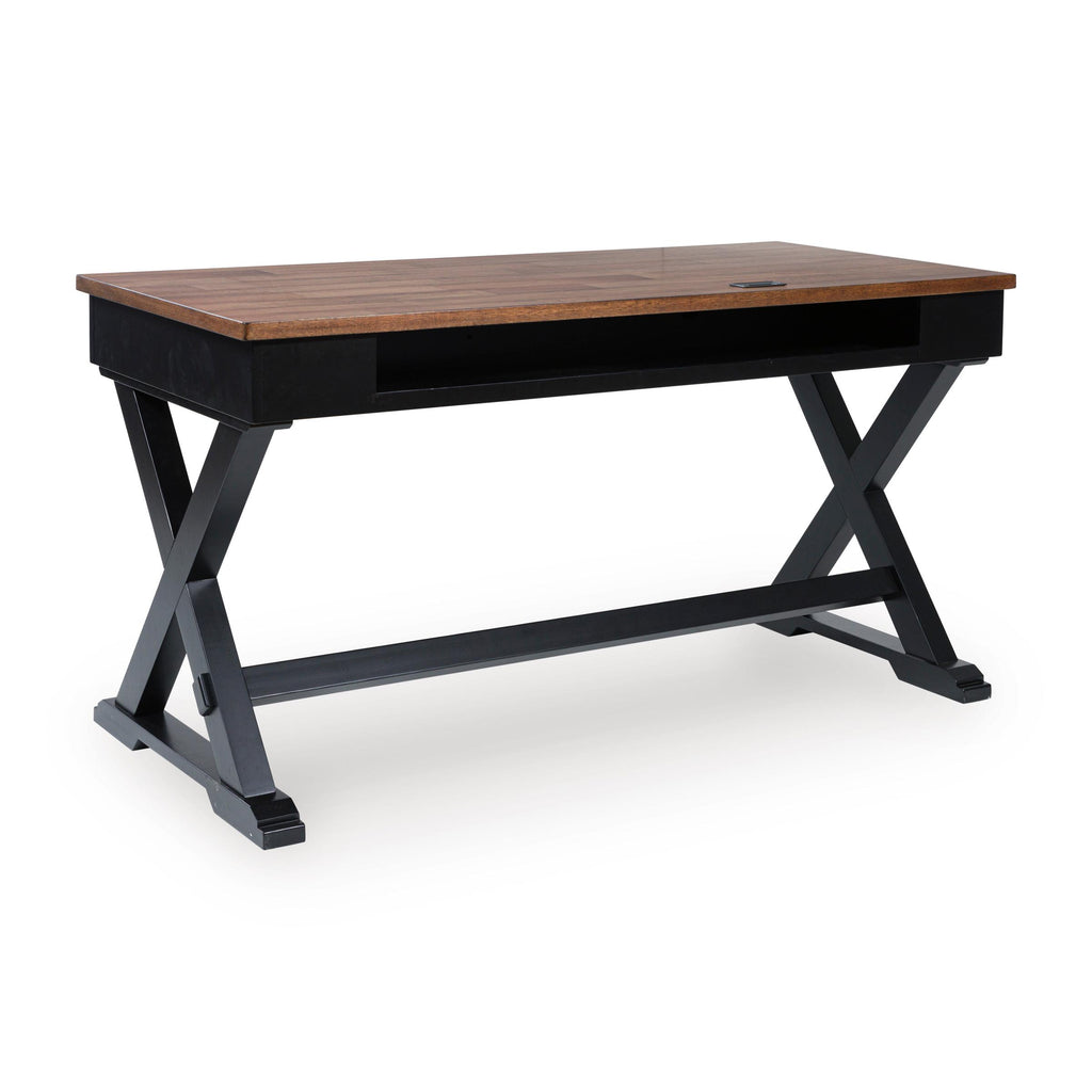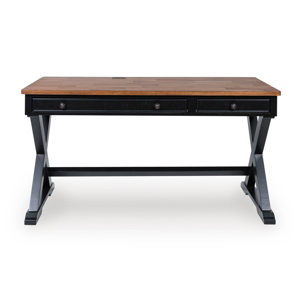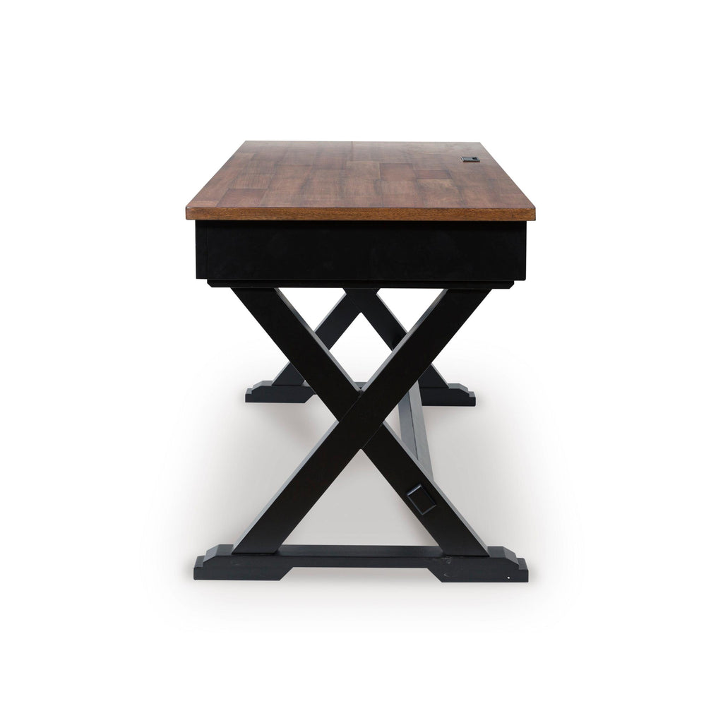 • Top with butcher block veneer pattern in rich brown wood-tone finish