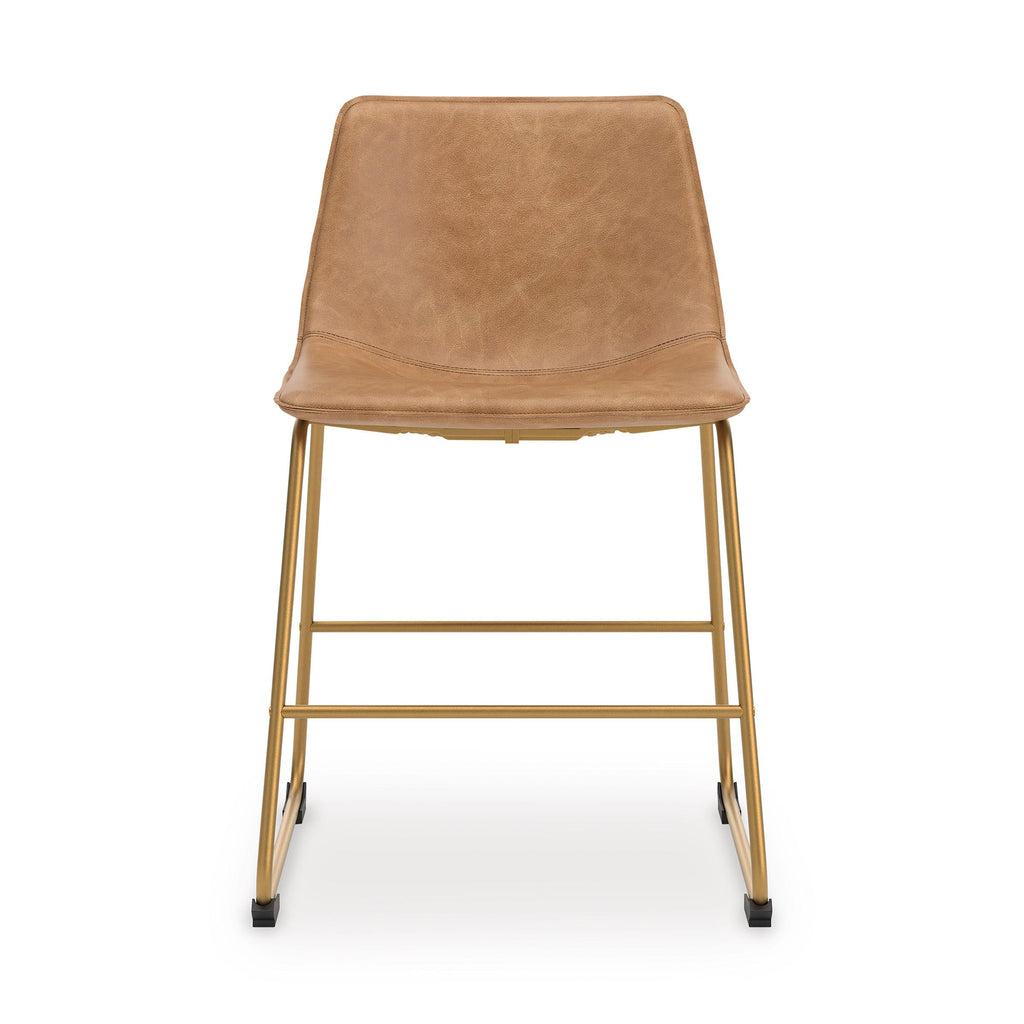 Dine in casual contemporary fashion with this chair. A retro-inspired bucket design gives it a mid-century vibe. Sleek faux leather and a luxe goldtone frame bring the look right into the present. And with a contoured seat for your comfort, it dishes out style and convenience all in one.