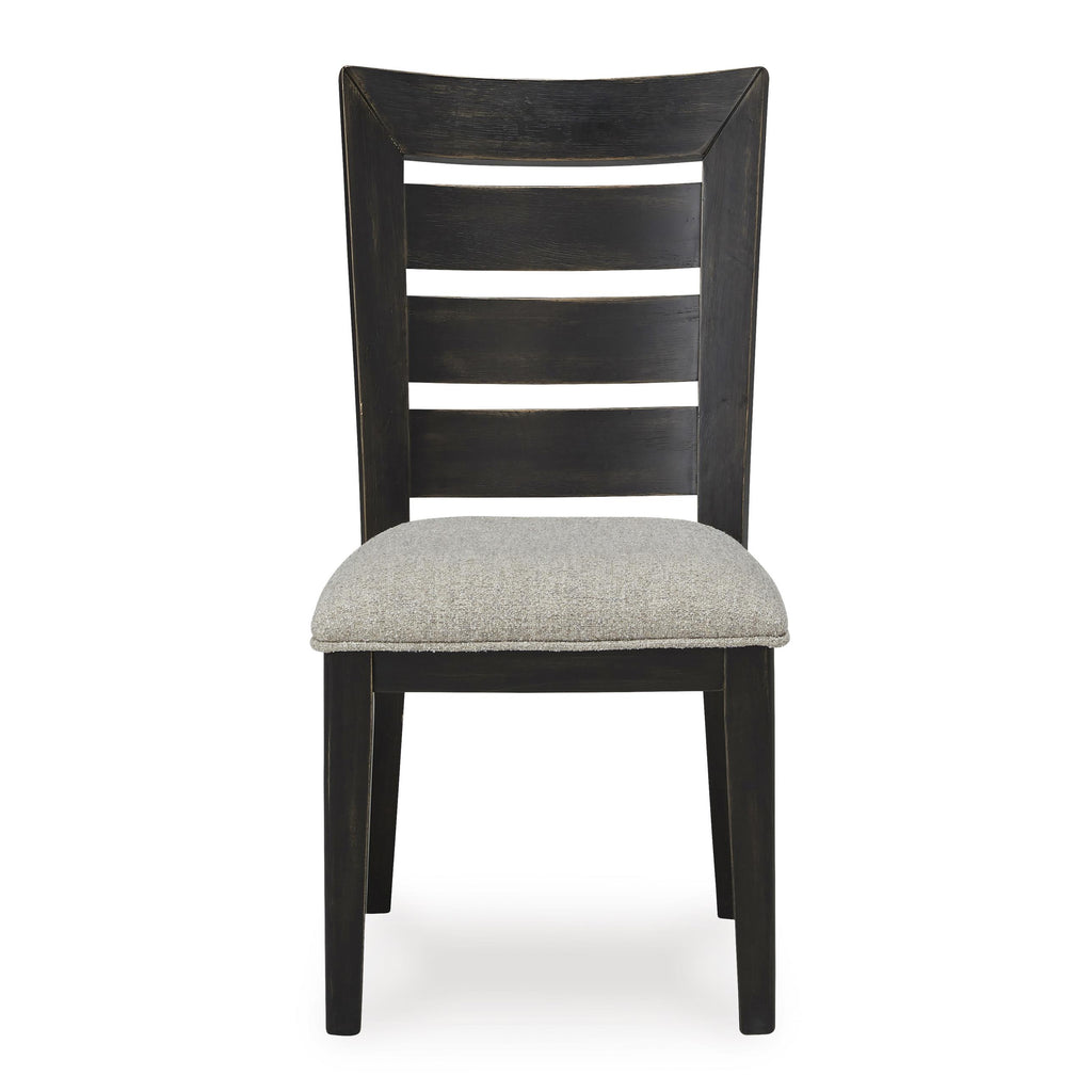| This dining chair brings a rustic vibe to urban contemporary design. It’s a modern approach to natural beauty, with an aged black finish defining the curved ladderback. The chair's color palette is stunningly simple, allowing it to coordinate seamlessly with your existing decor. |