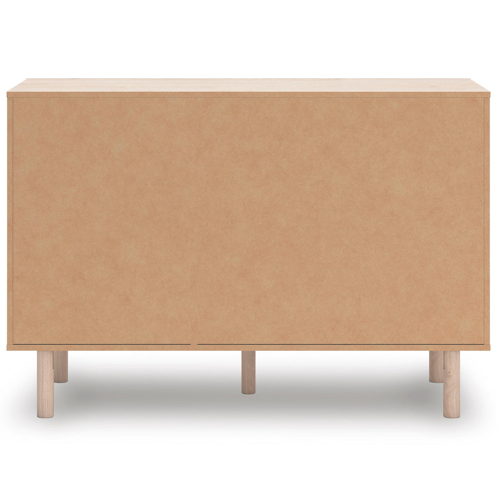 • Drawer interiors are lined with a faux linen laminate for a clean, finished look