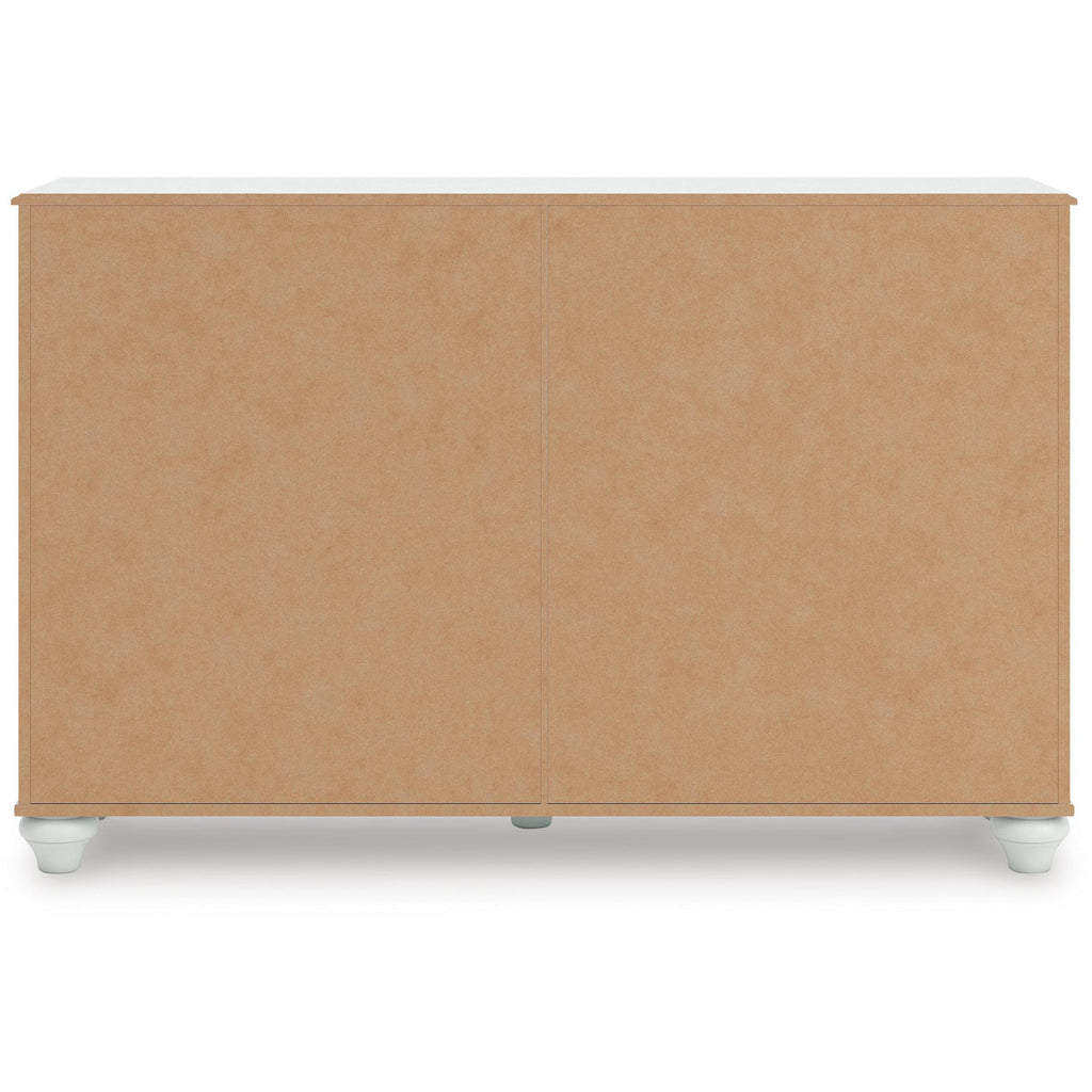 • Drawer interiors are lined with a faux linen laminate for a clean, finished look
