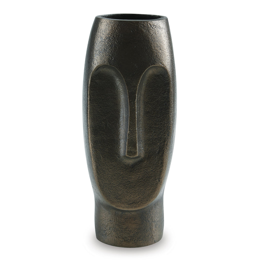 This vase offers an abstract take on the human profile. An antiqued bronze-tone finish adds an air of subtle sophistication. Artistic in form on its own, this contemporary piece is equally as impressive displayed with other decor.
