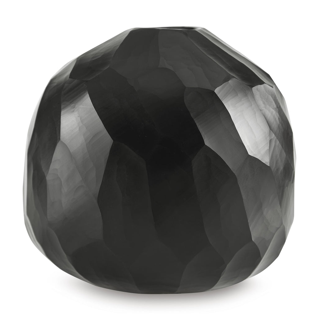 Put the accent on contemporary style with this vase. Wowing with multiple hand-carved facets, the cool black glass delivers true textural appeal from every angle. It’ll bring an artful touch wherever you see fit.