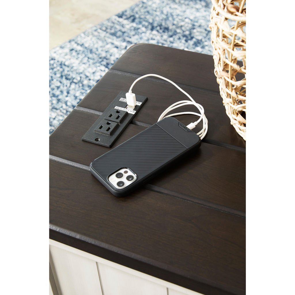 Make a farmhouse-inspired statement with this coffee table. Beautifully crafted to stand the test of time, the planked look and clean two-tone finish lend a relaxing vintage feel. A clever lift-top section and spacious storage drawers double up on form and function. 2 Matching chairside end tables included.