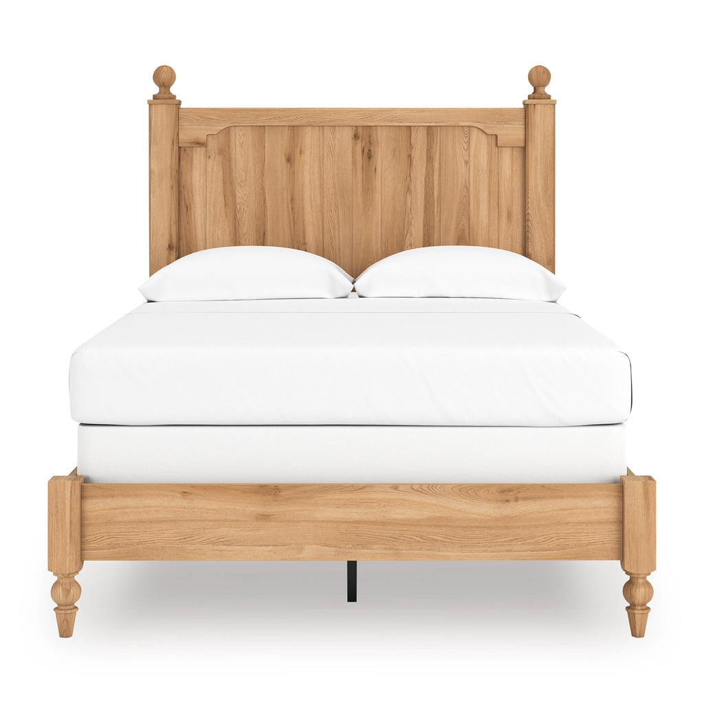 Country rustic. Vintage inspired. However you see it, you’re sure to be charmed by this full panel bed and its relaxed mix of picturesque aesthetics. A gracefully shaped rail brings dimension to the headboard, while decorative ball tops and turned legs adorn the silhouette in quaint fashion. A warm oak grain finish enhances the bed's air of easygoing elegance, letting you drift away to a simpler time and place. Boxspring required for this bed.