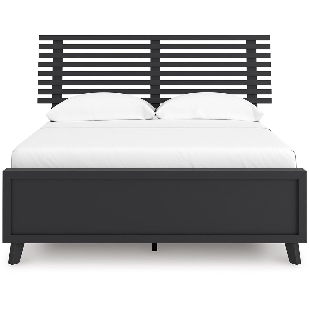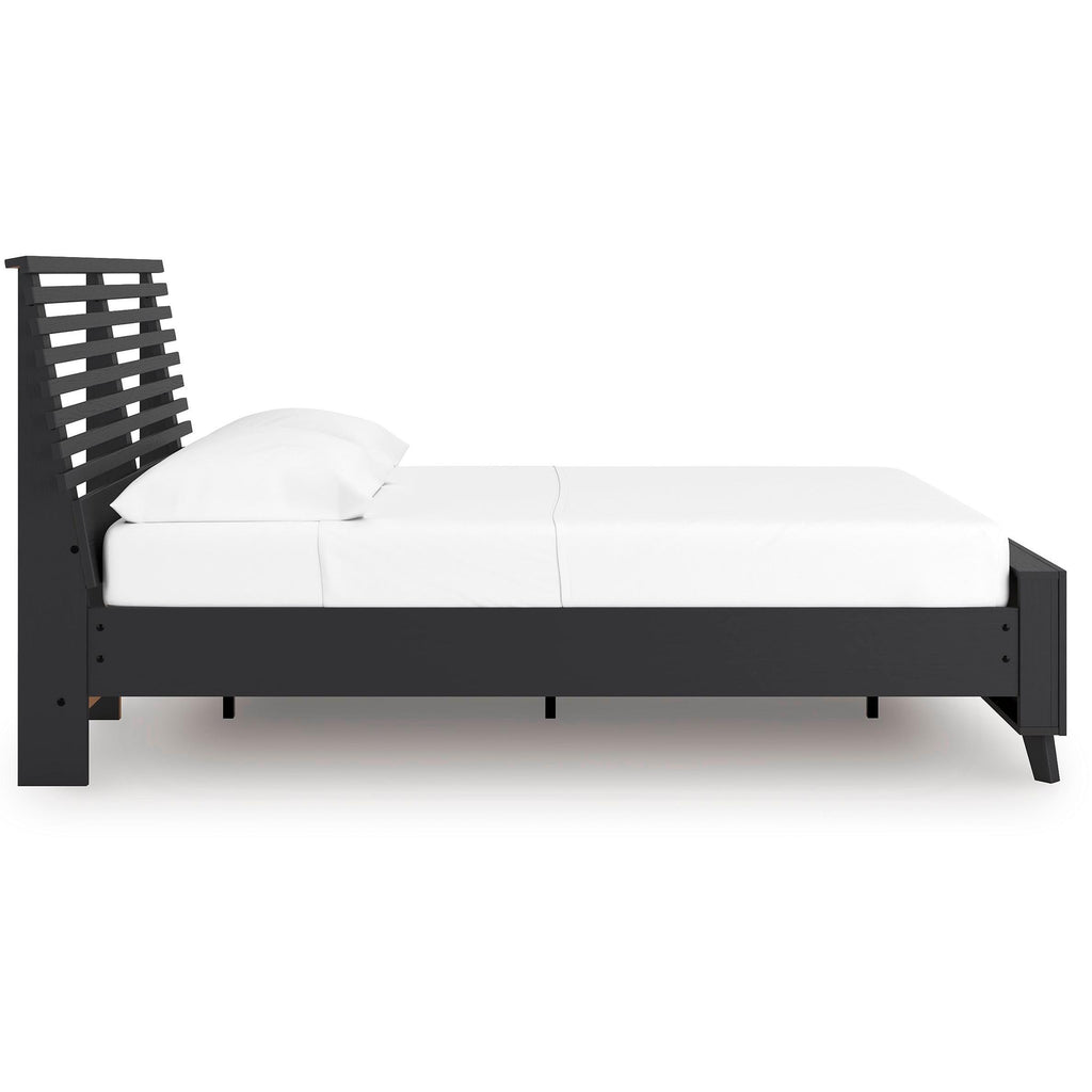 Sophisticated style for the savvy shopper. This slat panel bed prioritizes affordable, on-trend design. Its subtle replicated texture recalls the natural beauty of wood, highlighting the slatted styling. And a matte black finish suits different approaches to modern aesthetics. Mix and match with light and bright hues, or pair with other dark tones for a moody look.