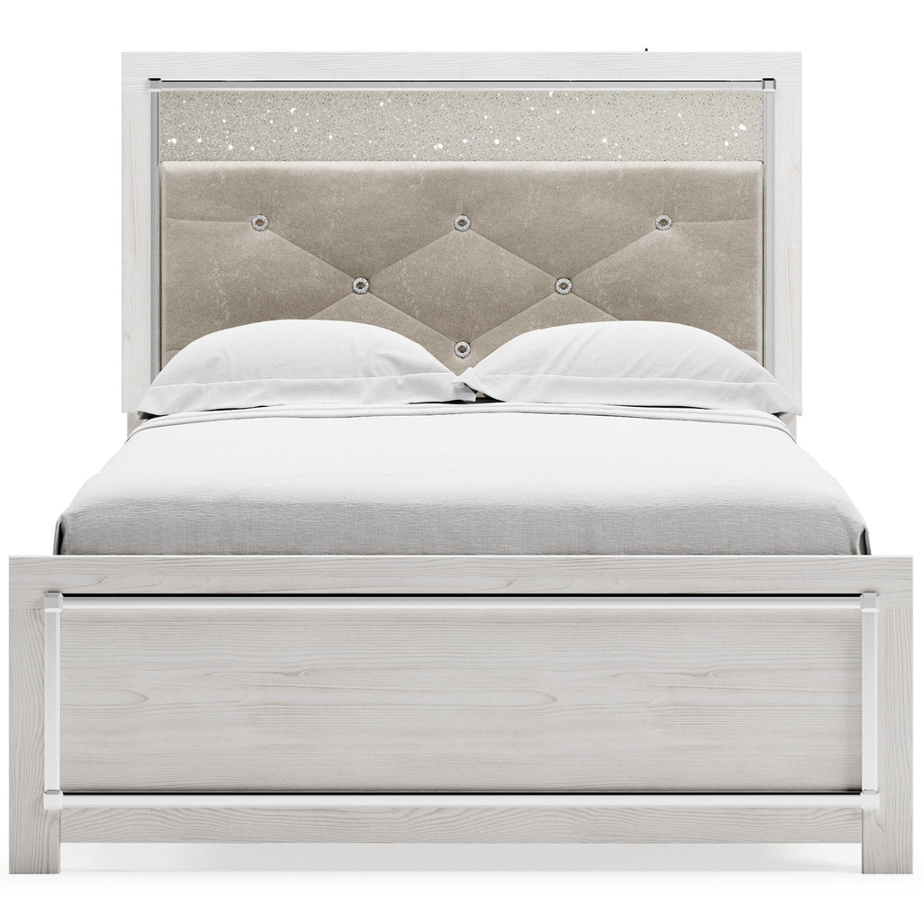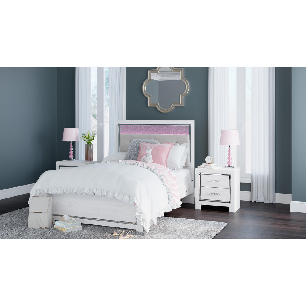 • Headboard with LED light strip with remote-controlled color and brightness options