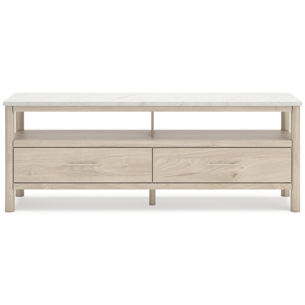 • Drawer interiors are lined with a faux linen laminate for a clean, finished look