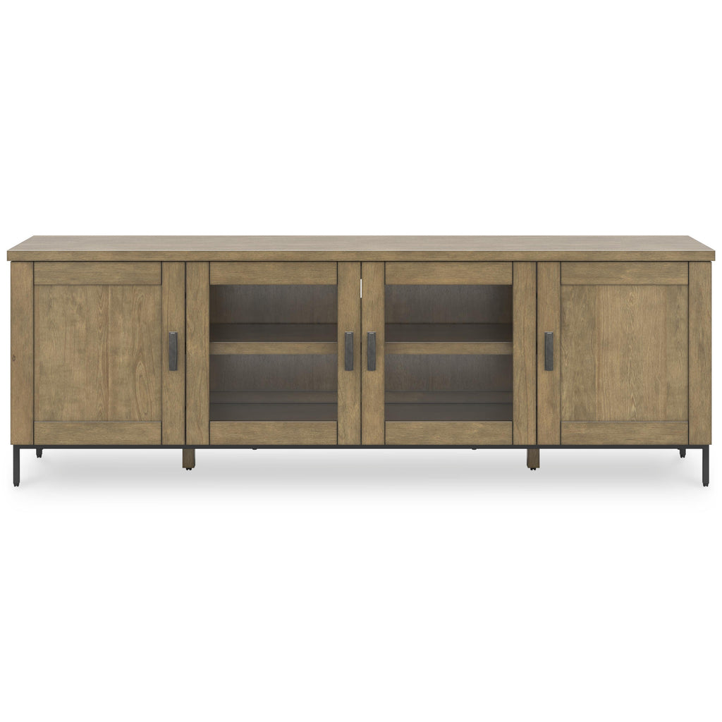 • Center cabinet with inset glass doors and 2 adjustable shelves