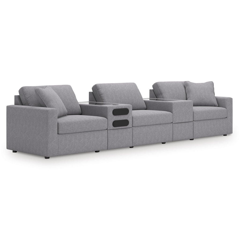 • Storage and audio consoles with plexiglass top and pull-out drawer; audio console includes built-in sound system with wireless connectivity, audio controls and USB charging