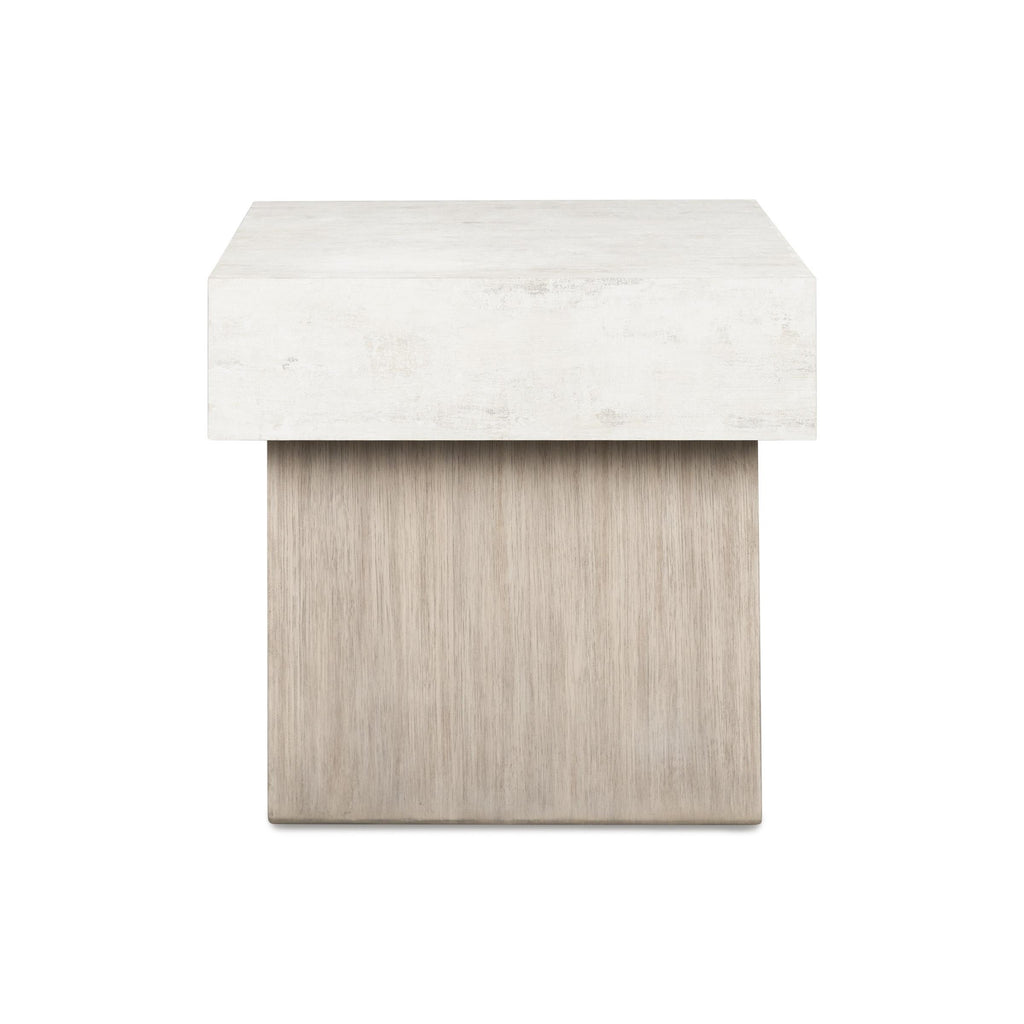 This end table is proof positive that sleek, contemporary styling can suit busy lifestyles. Its substantial cement-look top is perched on a textural gray base for an elevated mixed-material look. Don’t want to sacrifice function for fashionable flair? The table's MEGA-TUFF® melamine provides must-have durability and cleanability, resisting stains, scratches, heat and water.
