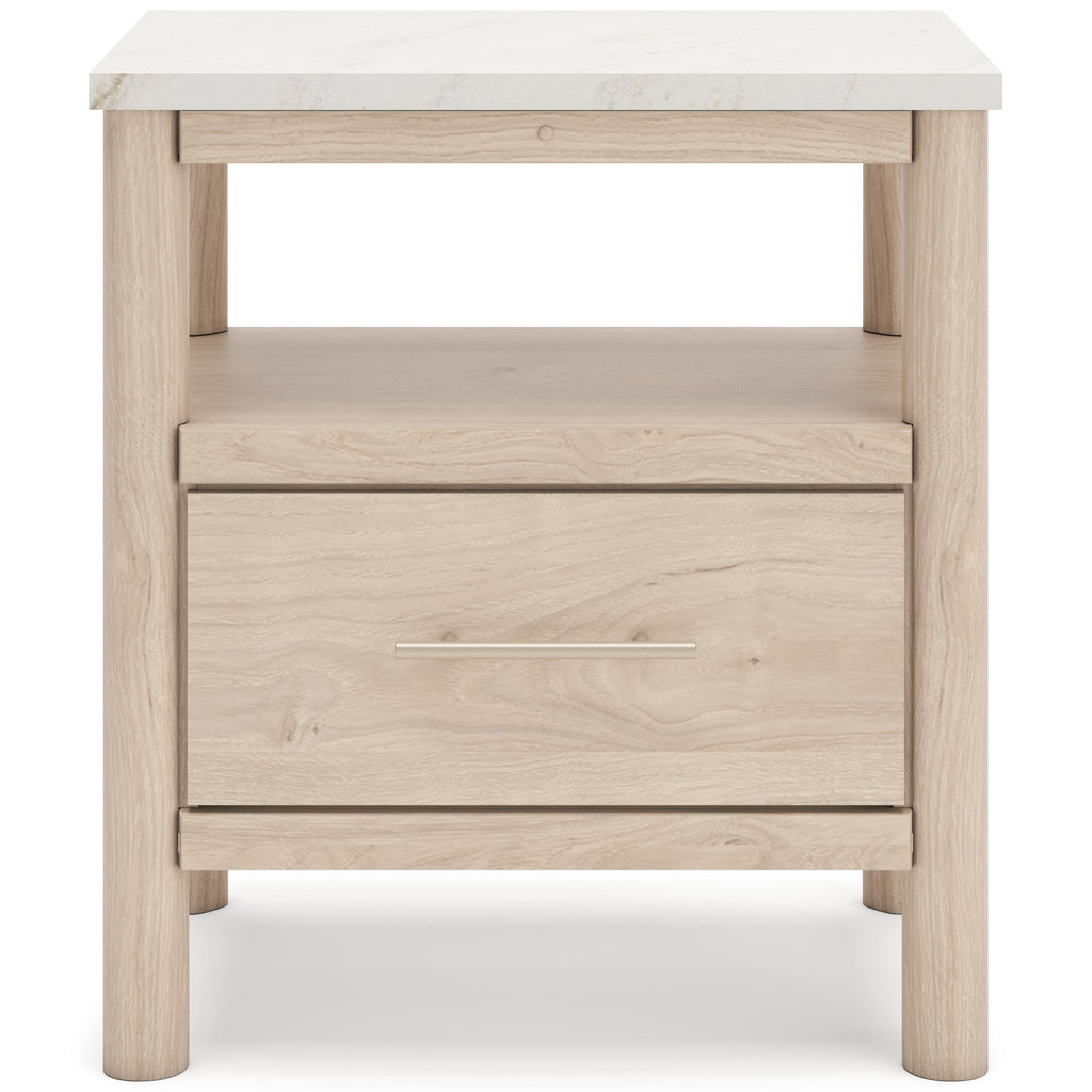 • Drawer interior is lined with a faux linen laminate for a clean, finished look