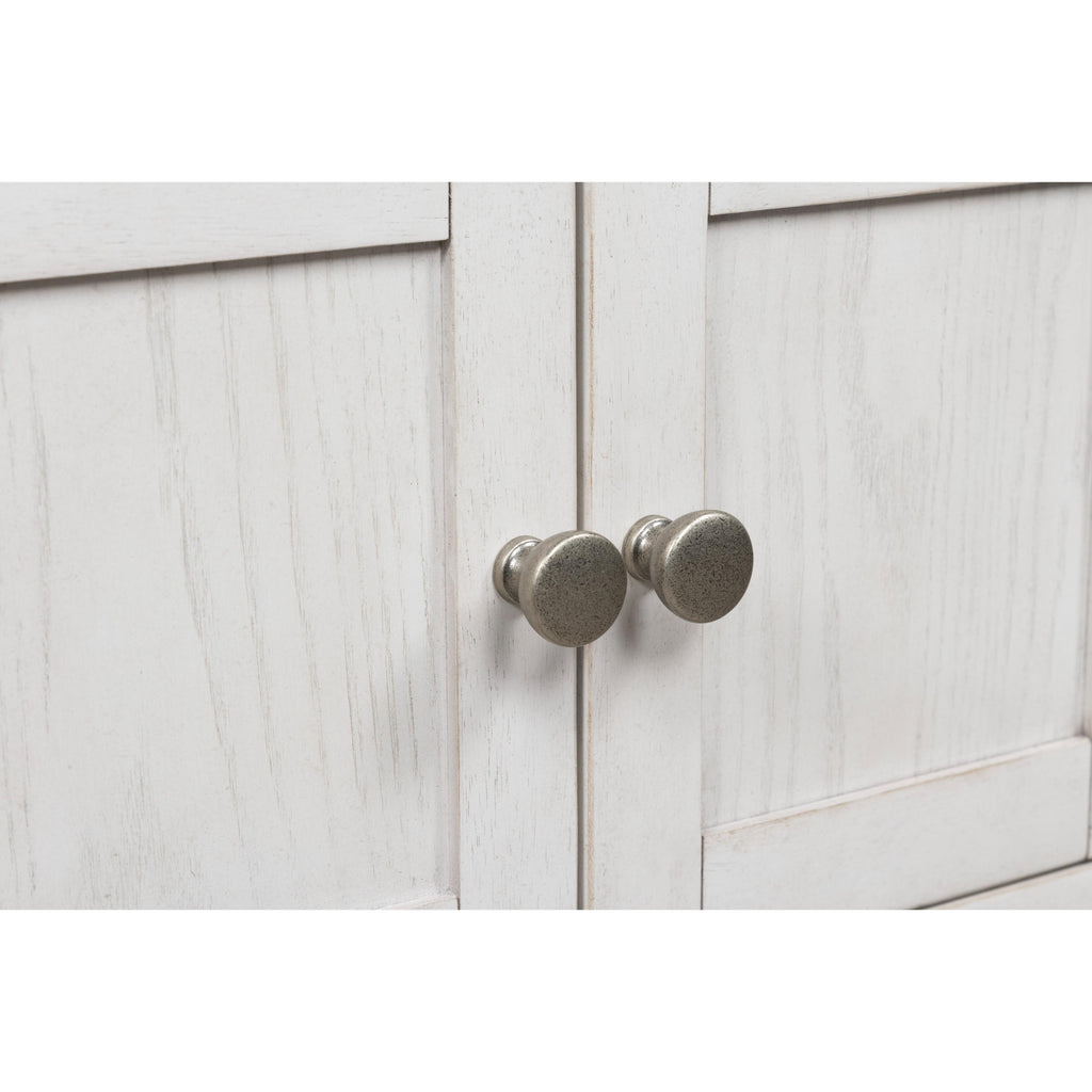 • Antiqued white finish with wood grain texture